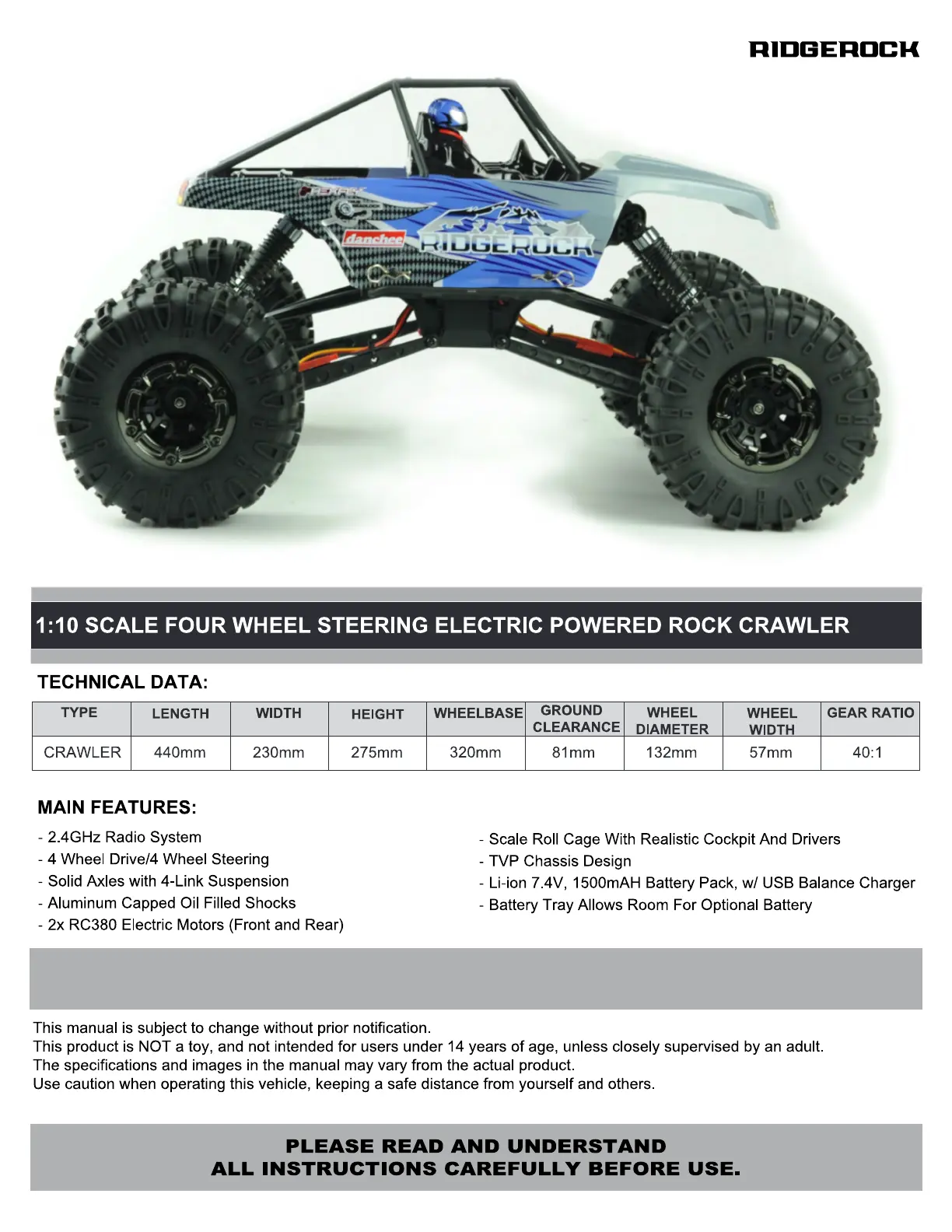 1:10 SCALE FOUR WHEEL STEERING ELECTRIC POWERED ROCK CRAWLER