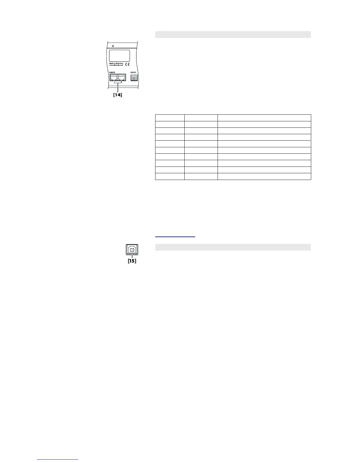 The SERVICE interface [15] (USB type B connector) allows operating