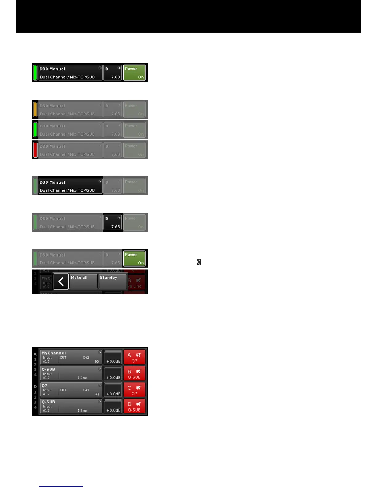 – Channel mute buttons and status.