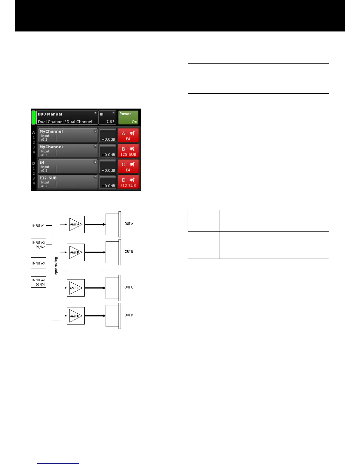 audio input for each amplifier channel can be assigned via the