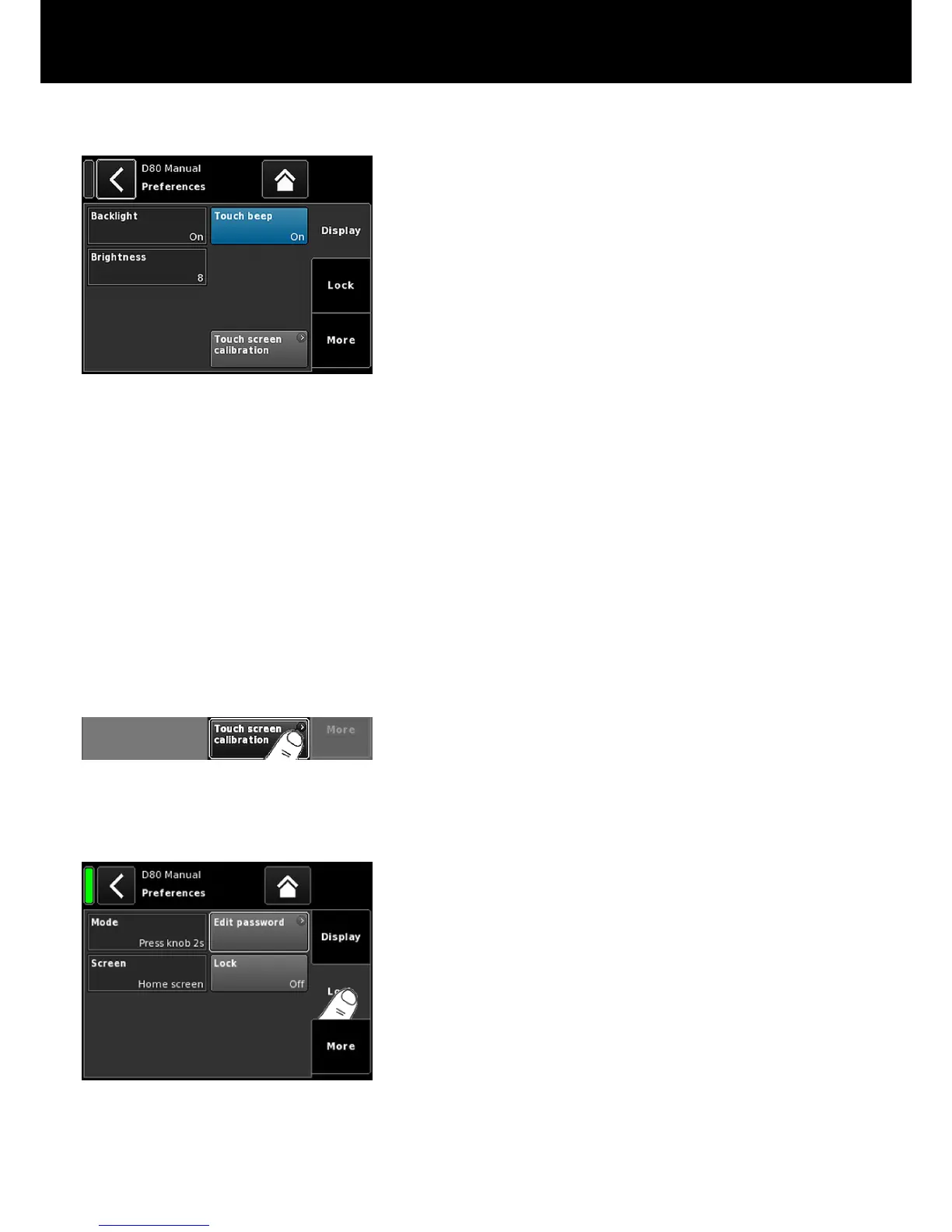 To calibrate the Touch screen proceed as follows:
