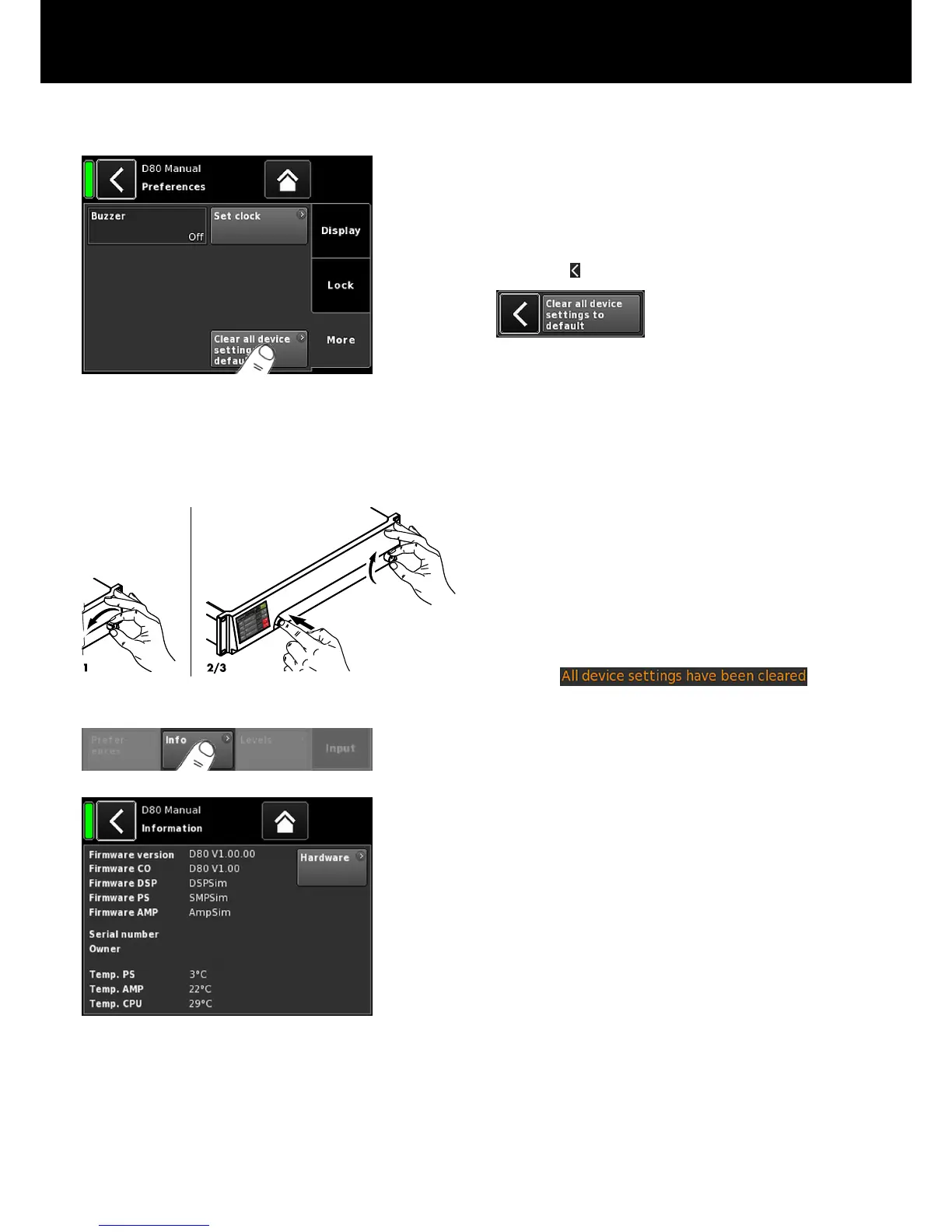 Selecting «Clear all device settings to default» resets all device
