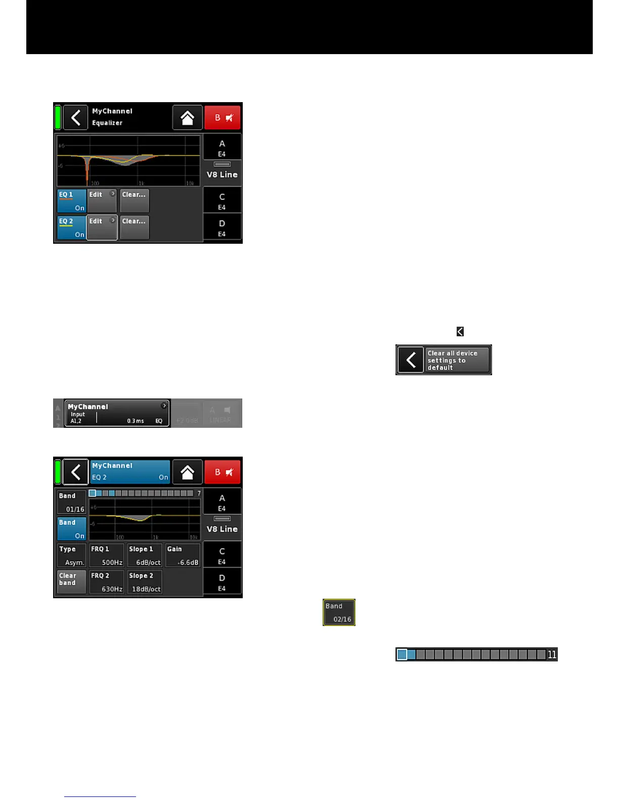 response of all filters while «EQ 1» is displayed in red and «EQ 2»
