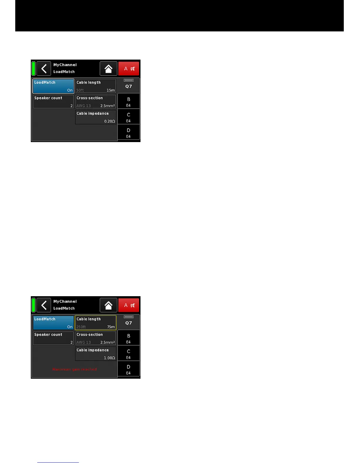 Selecting «LoadMatch» on the Speaker setup screen opens the