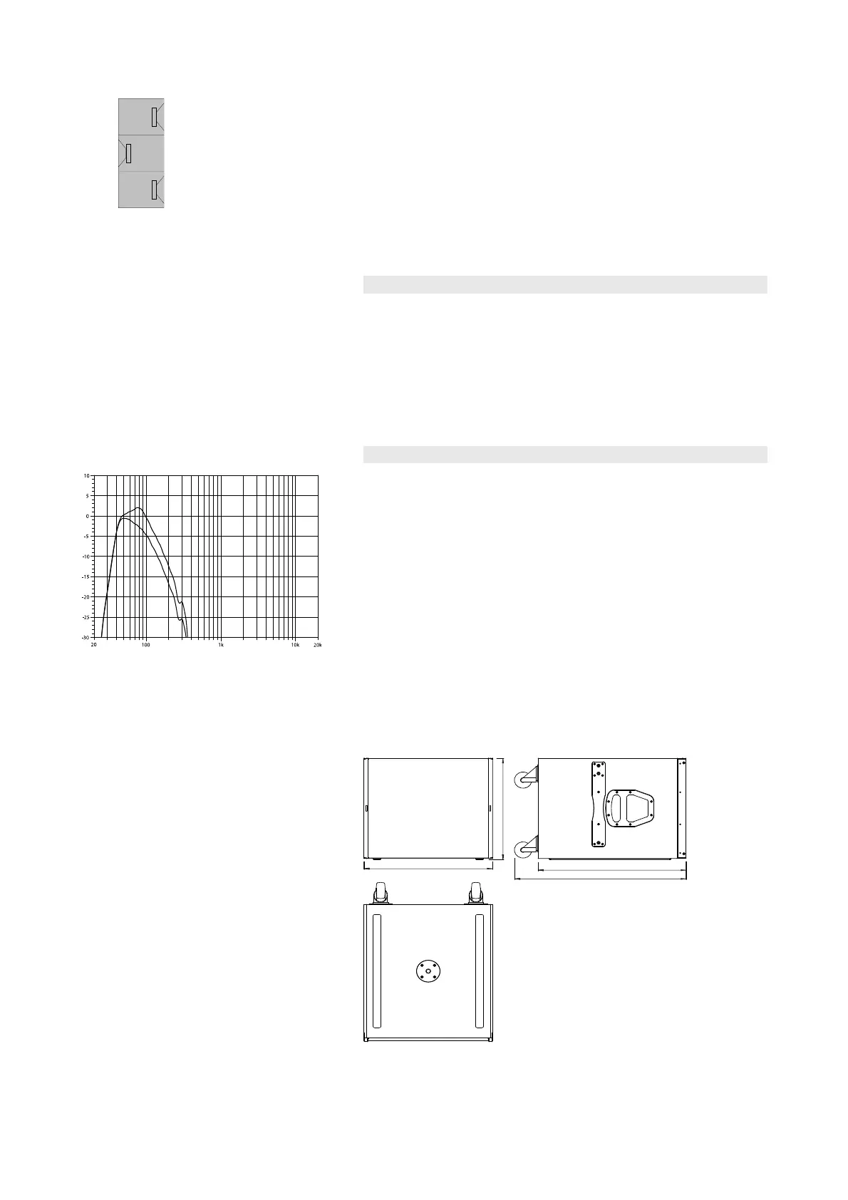 Frequency response (–5 dB 100 Hz mode).........................................40 Hz ... 100 Hz