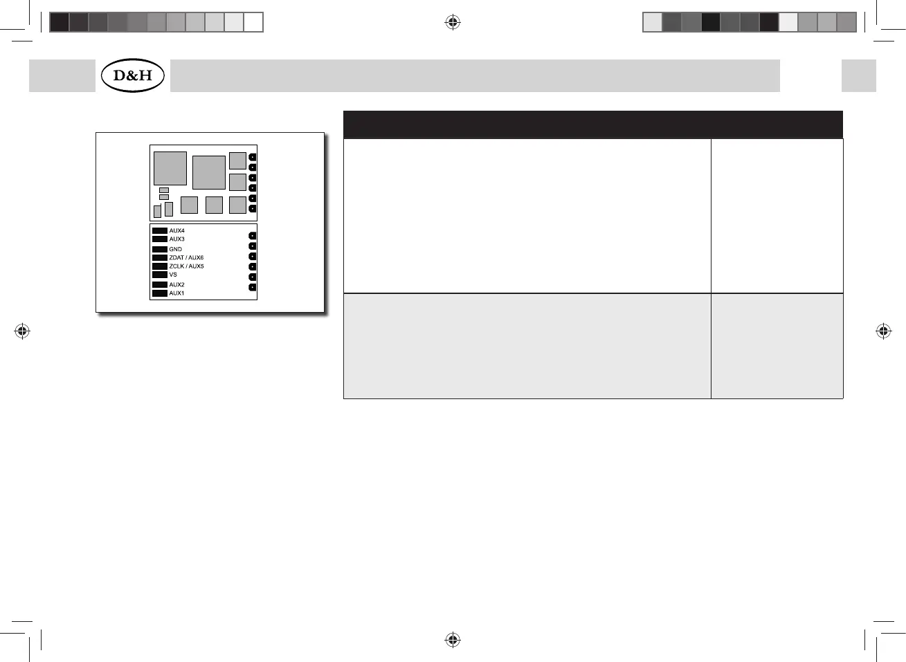 AUX3, AUX4 ..... Unamplifi ed function 3, 4 (each 1,0 A)