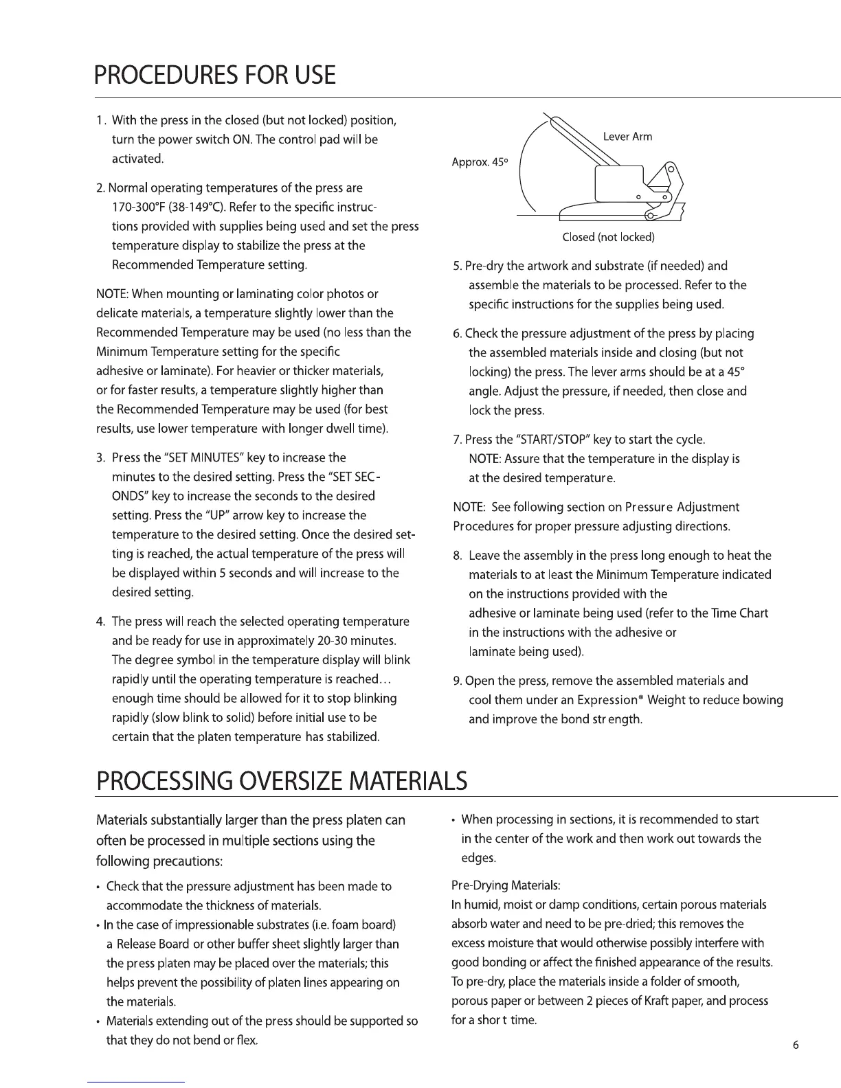 D&K Masterpiece 550 - Procedures for Use; Processing Oversize Materials