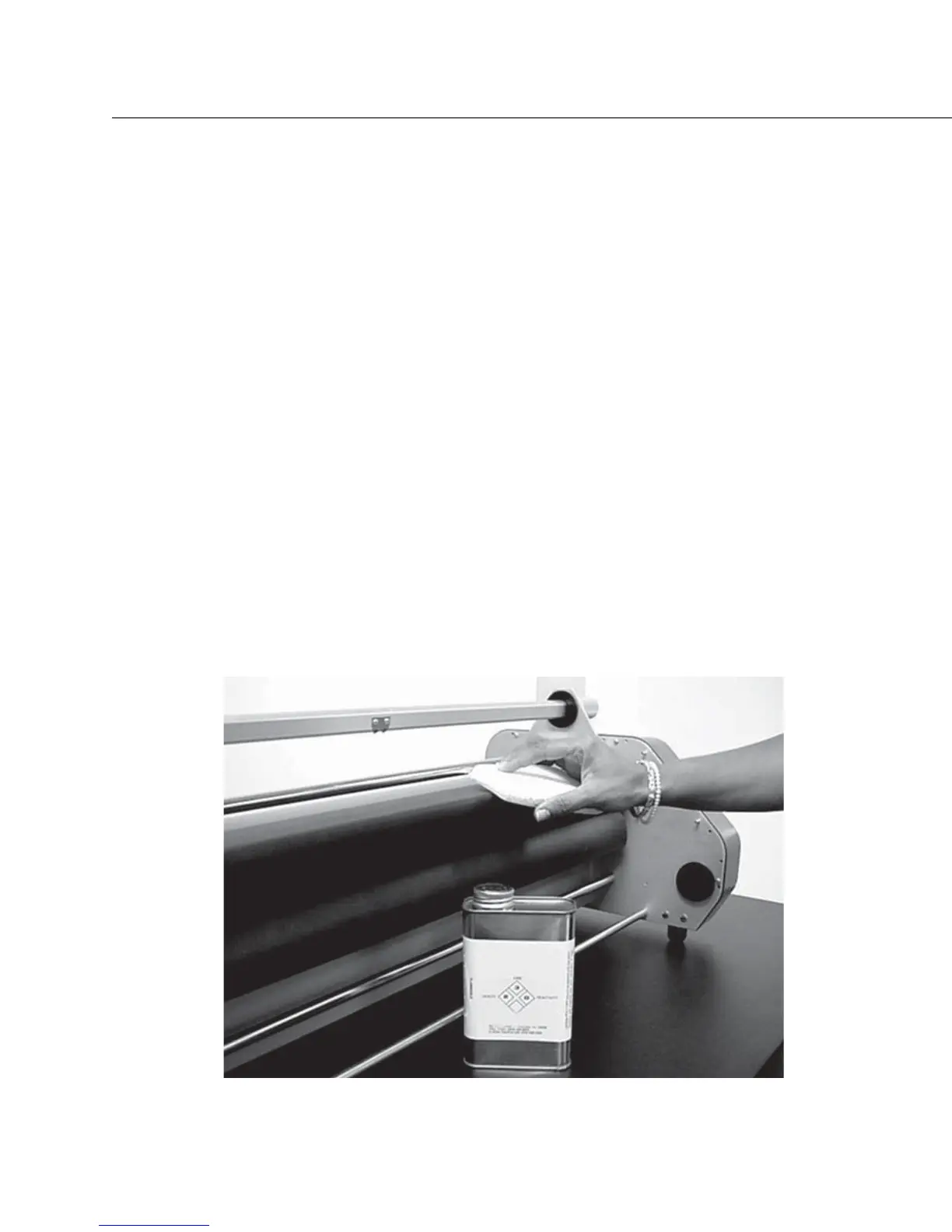 To clean the shoes and rollers, use a clean, lint-free cloth. Some suggested solvents are rubbing