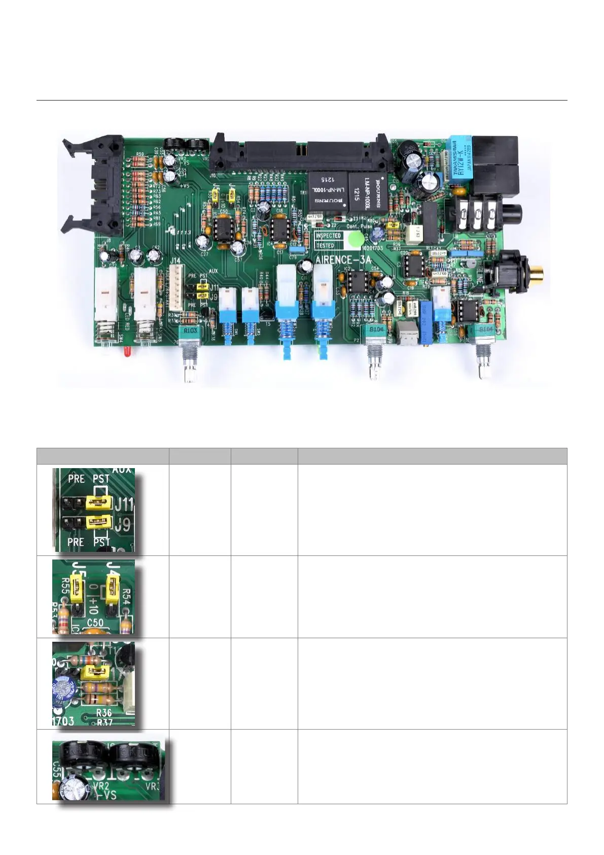 J11/J9 PST Stereo Aux send pre or post selectable via Jumper J11/9 (post
