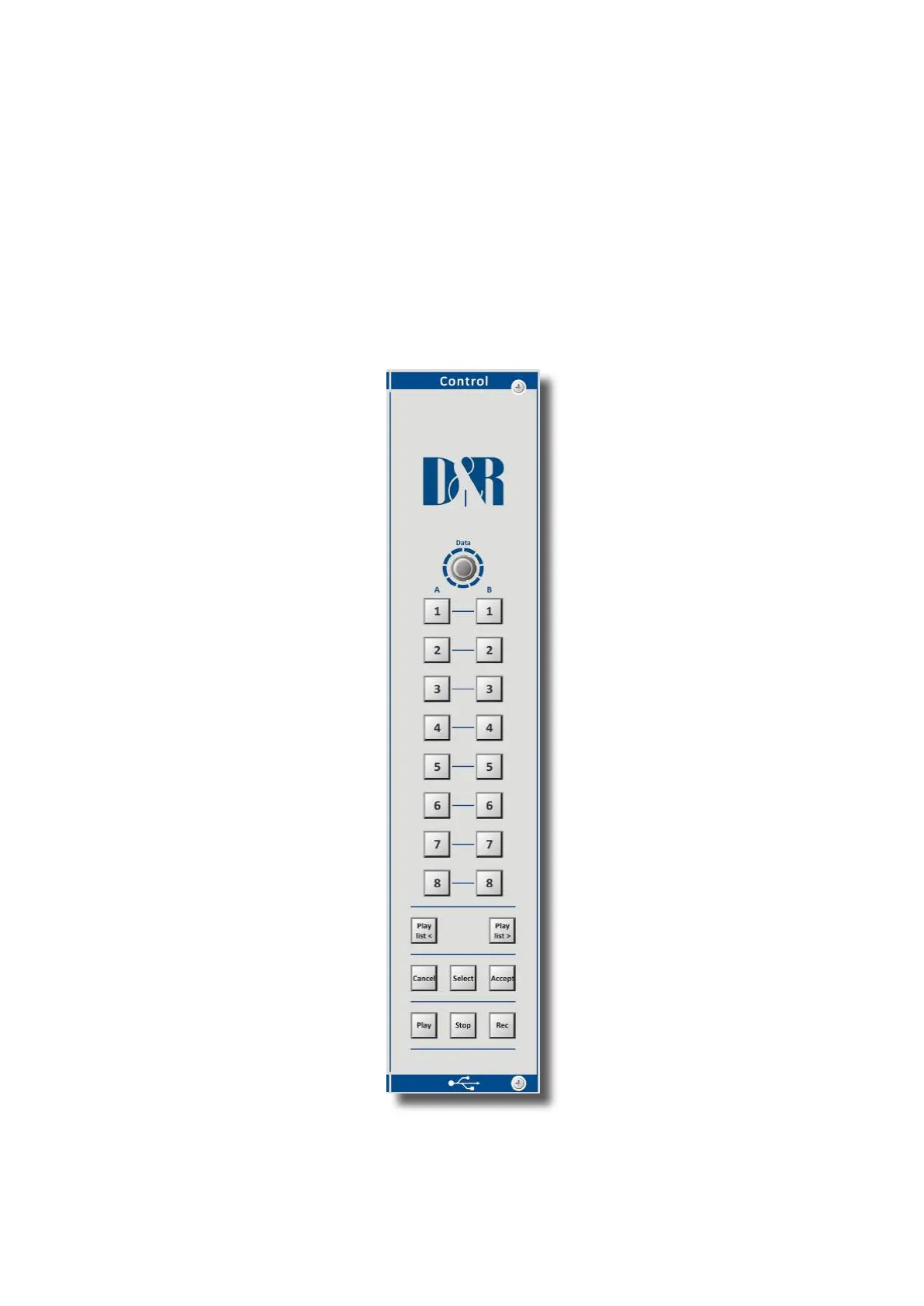 the mixer and consists of 24 illuminated switches and a rotary encoder with push switch. The switches are able to illuminate red,