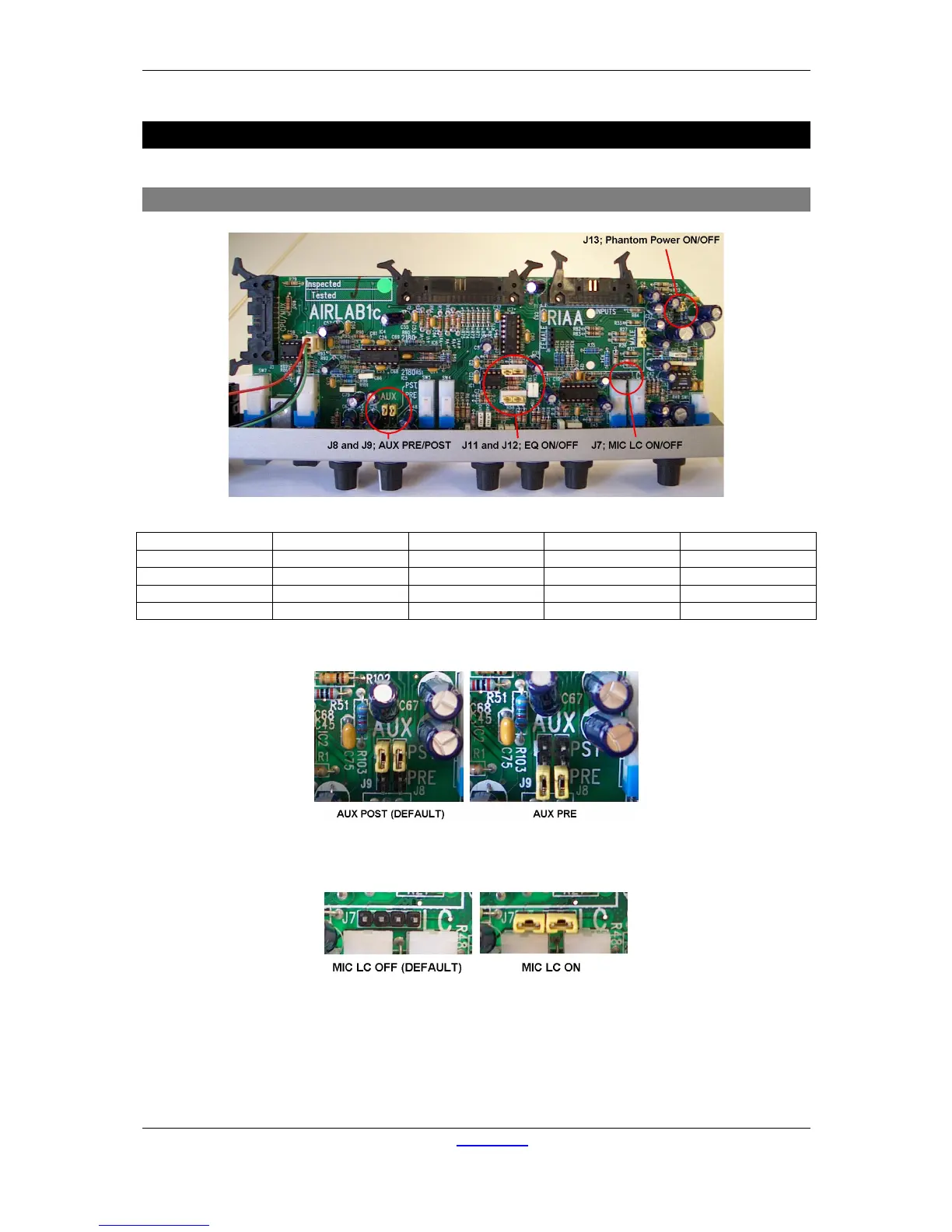 LC MIC only J7 1+2 / 3+4 = ON No Jumper = OFF OFF