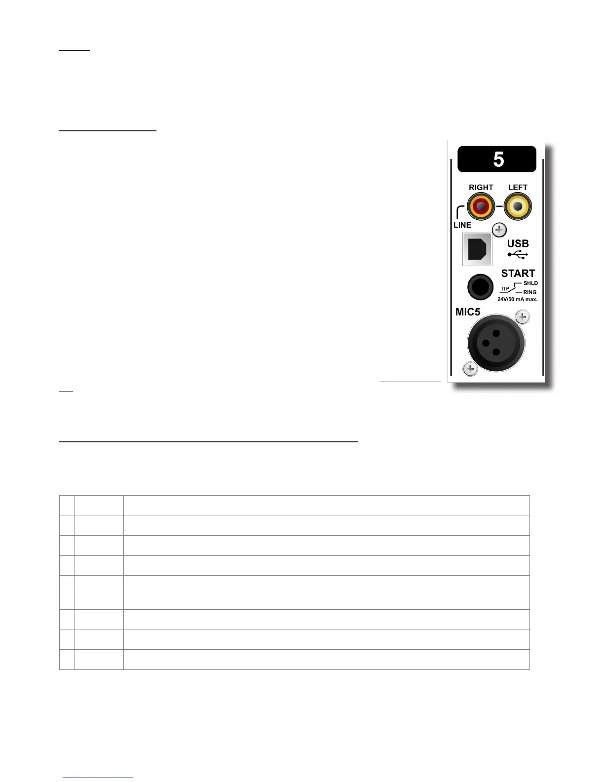 On the back of your AIRMATE-USB modules 5 and 6 you will nd the following ve connec-