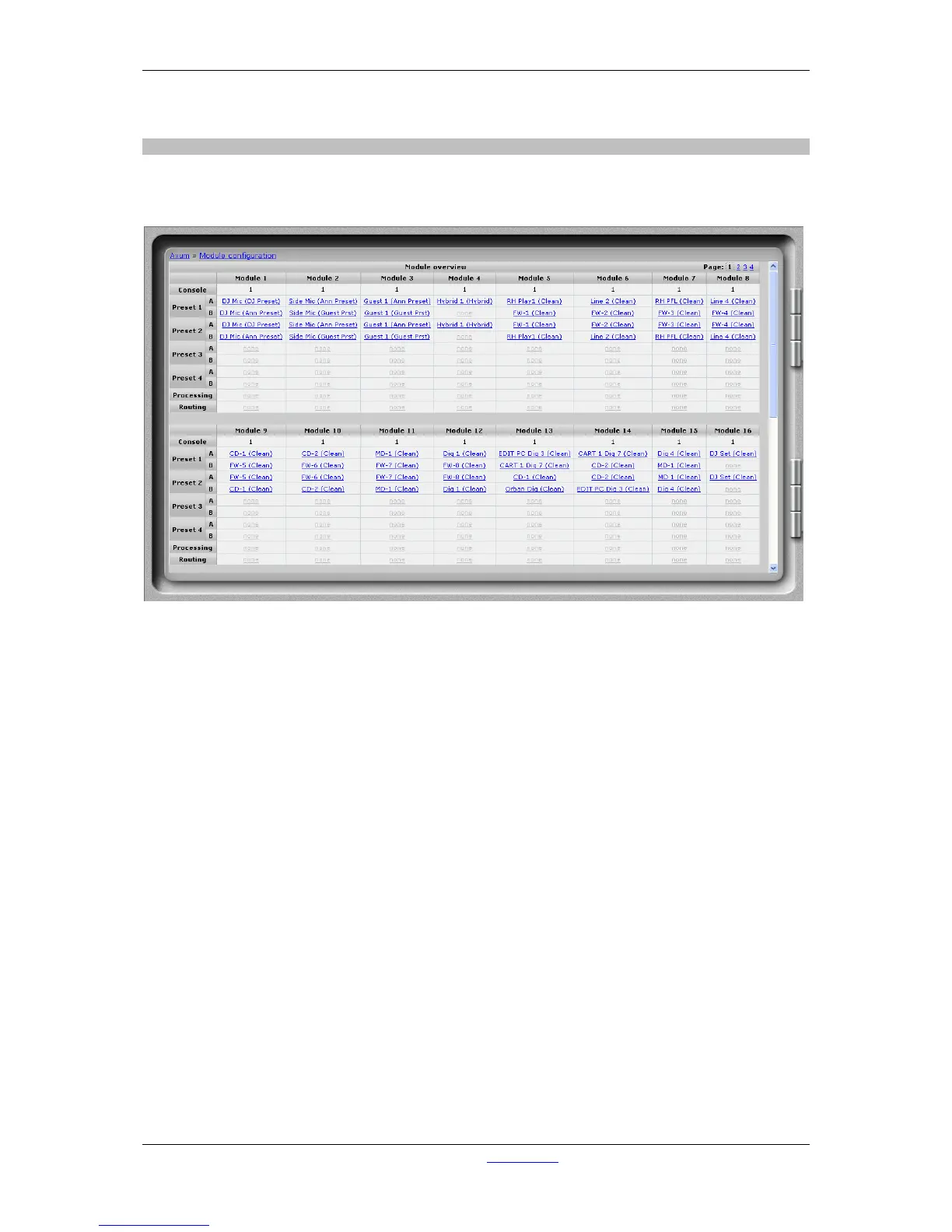 Shows the source and processing preset selected for corresponding module preset. If the ‘#’
