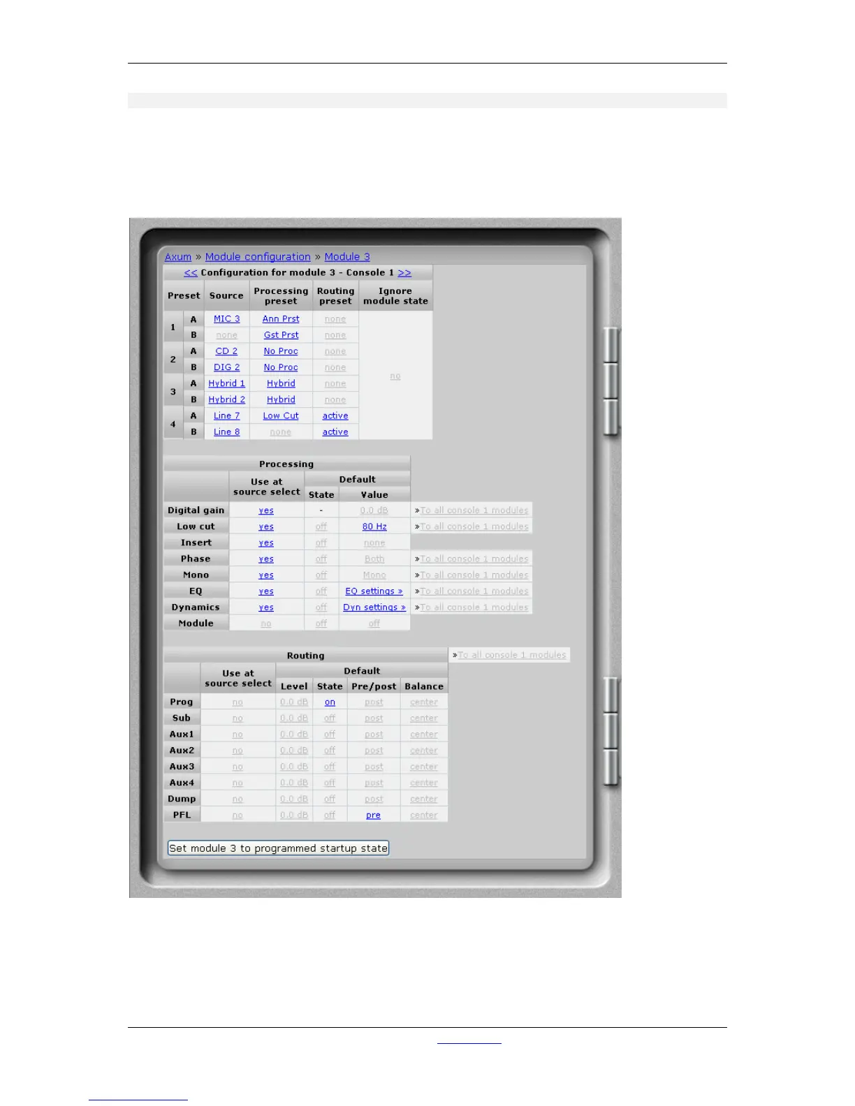 modules in this console (for example if you want to use the same EQ center frequencies) you can
