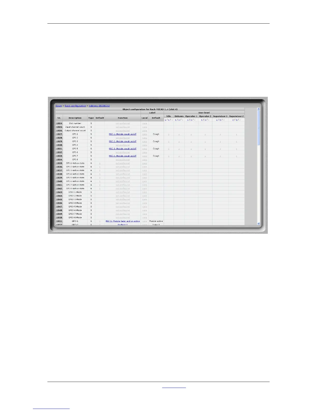 Here you can define which console user level the I/O card will use (e.g. for its GPIs).
