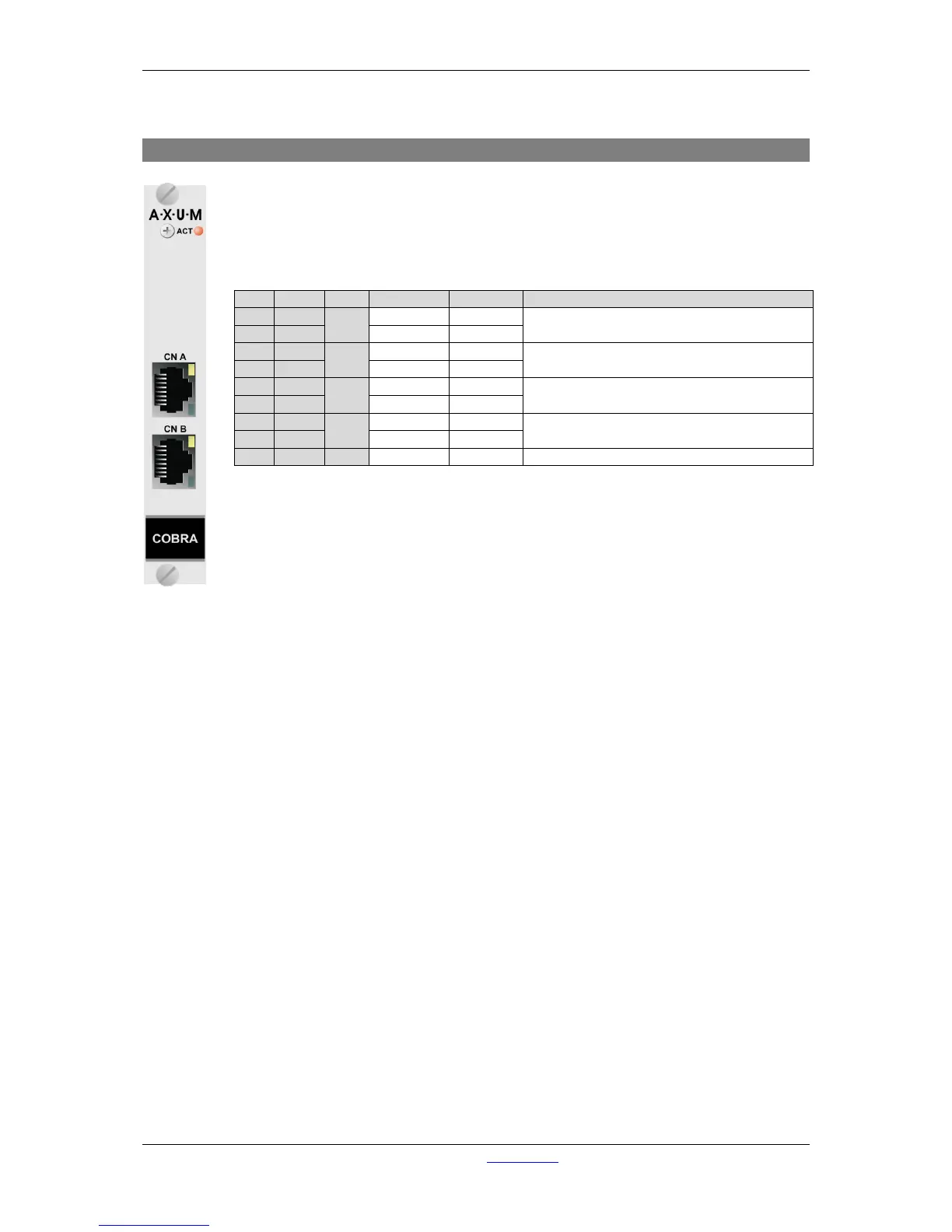 Table 10-7: CobraNet RJ45 (Ethernet) connection.
