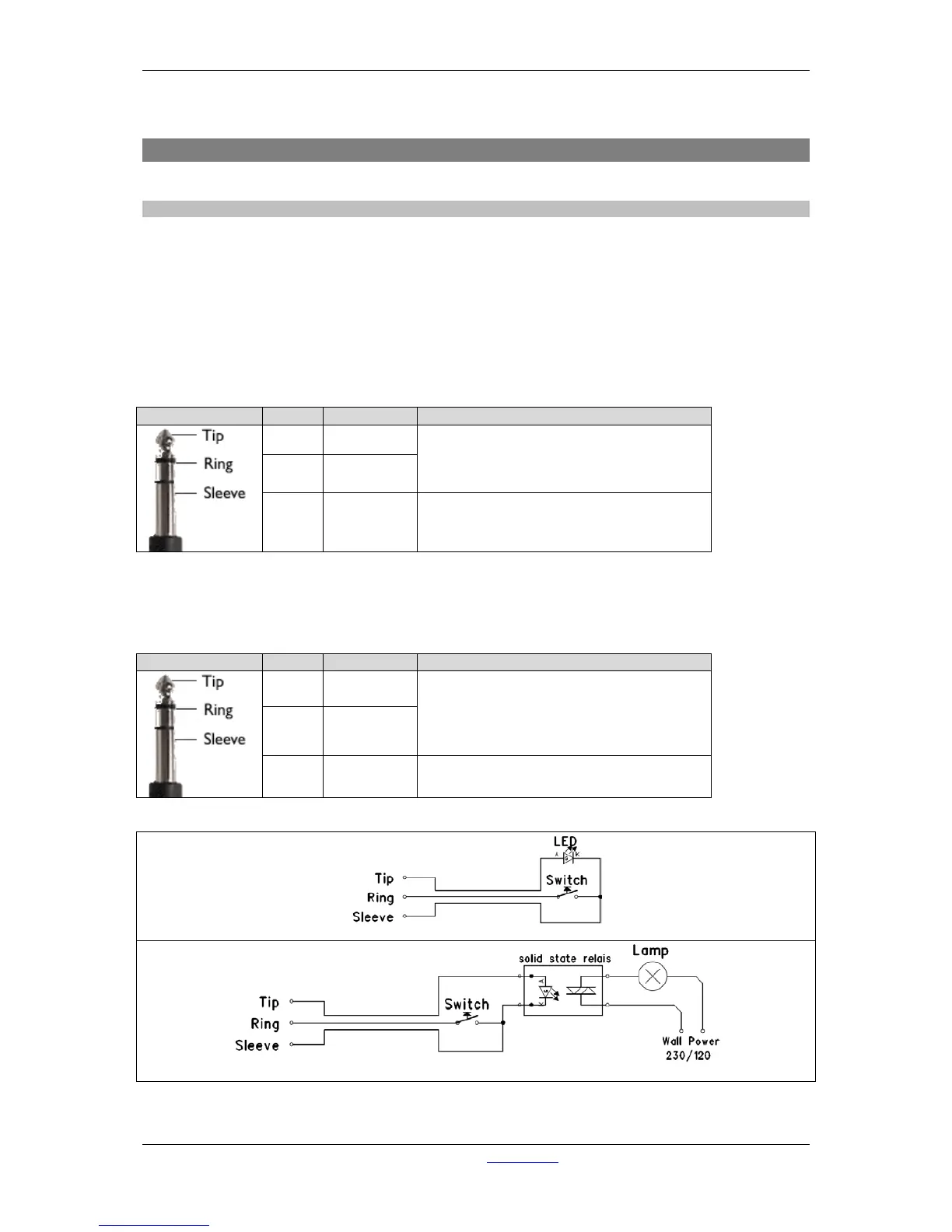 Remote-Output by a build in Solid State Relay. The relay is situated between Tip and Ring of the