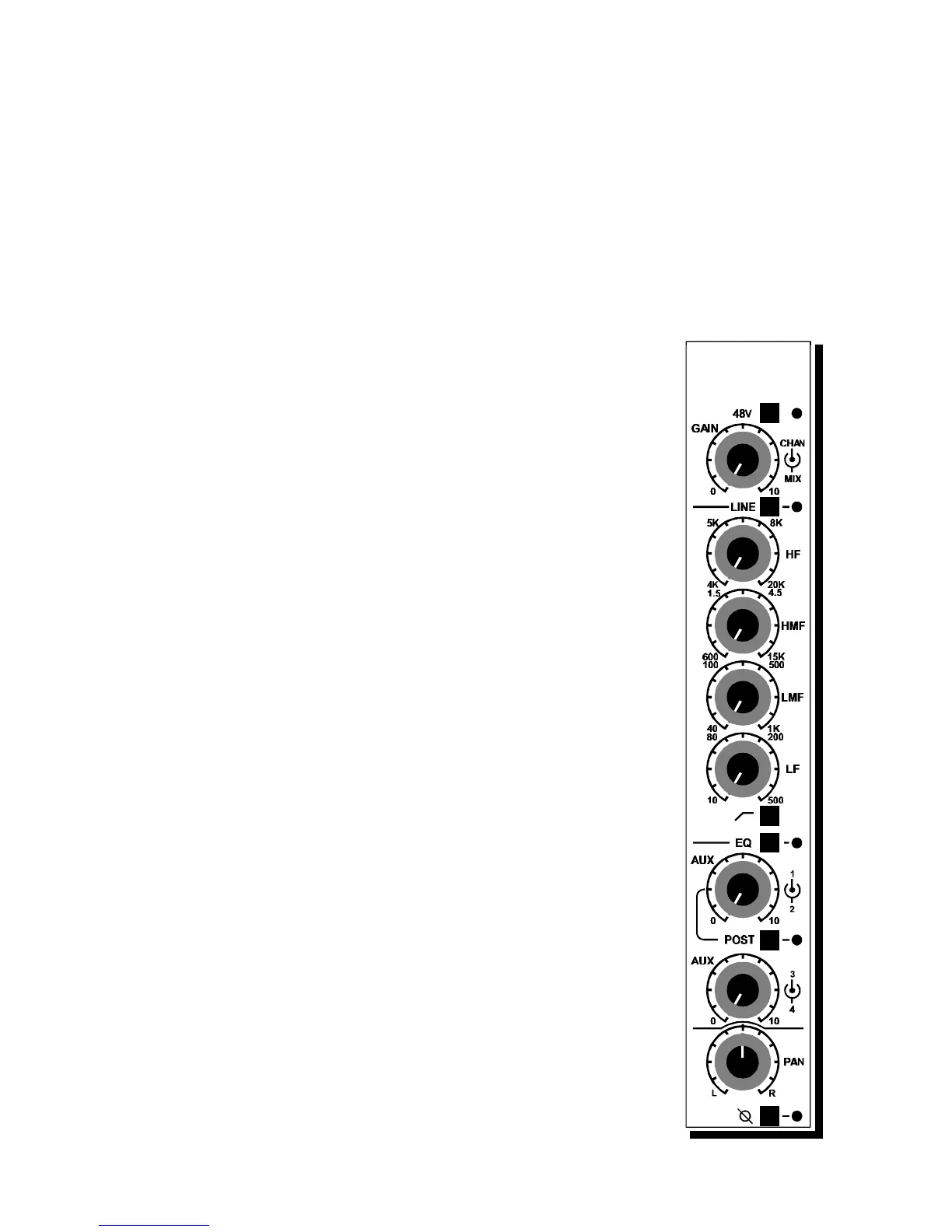 adjusts the mic/line levels in the CHANnel path and the bottom