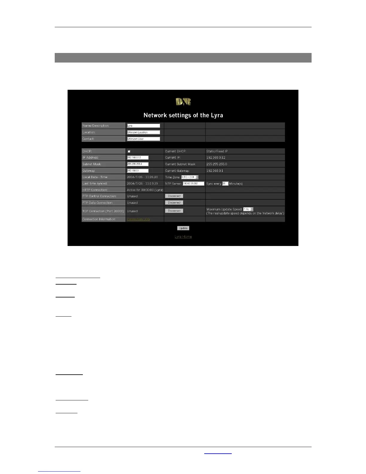 The DHCP option enables the Lyra to search the network for the DHCP server.