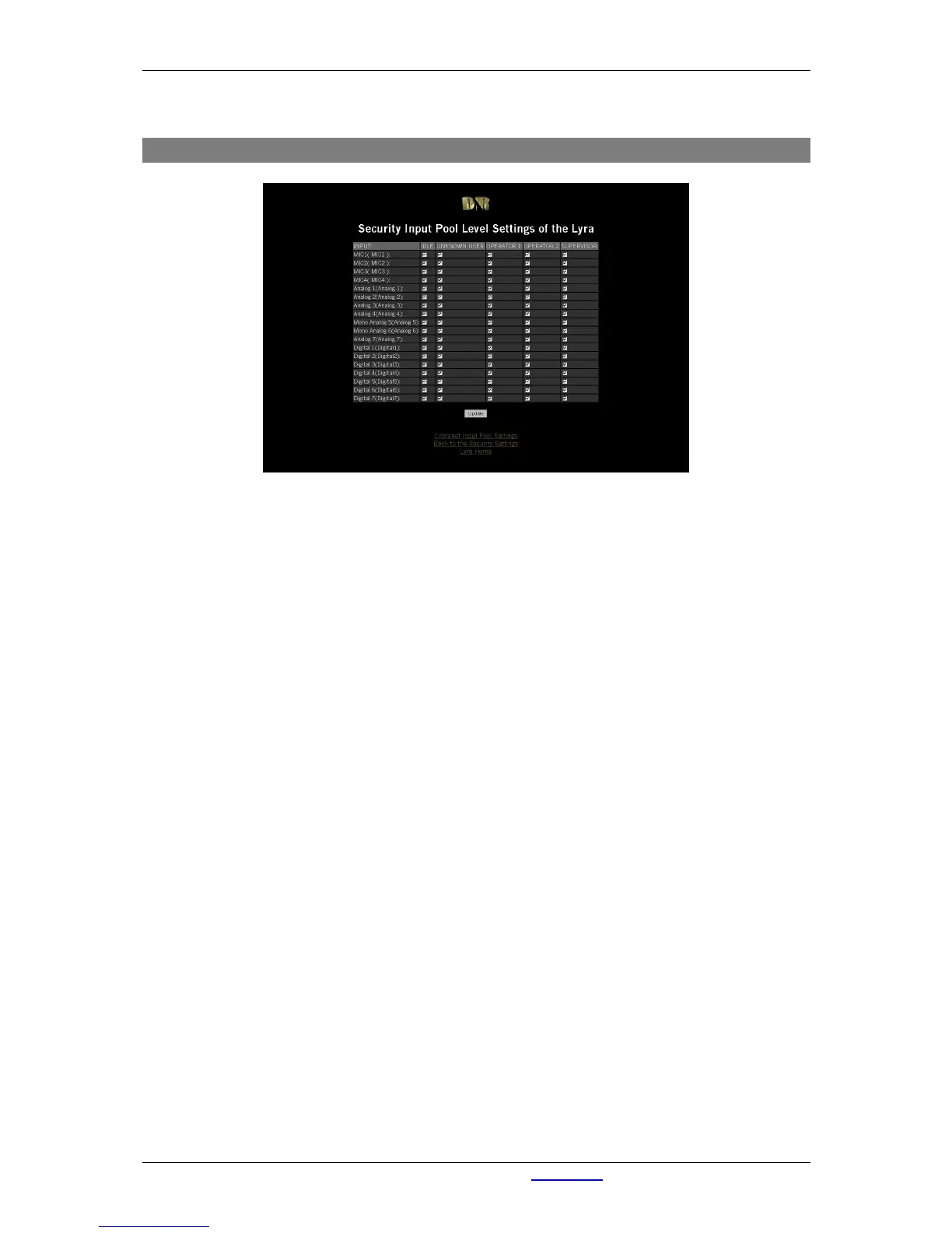 The Input Pool Level Setting menu enables you to prevent users will access the inputs from the control-