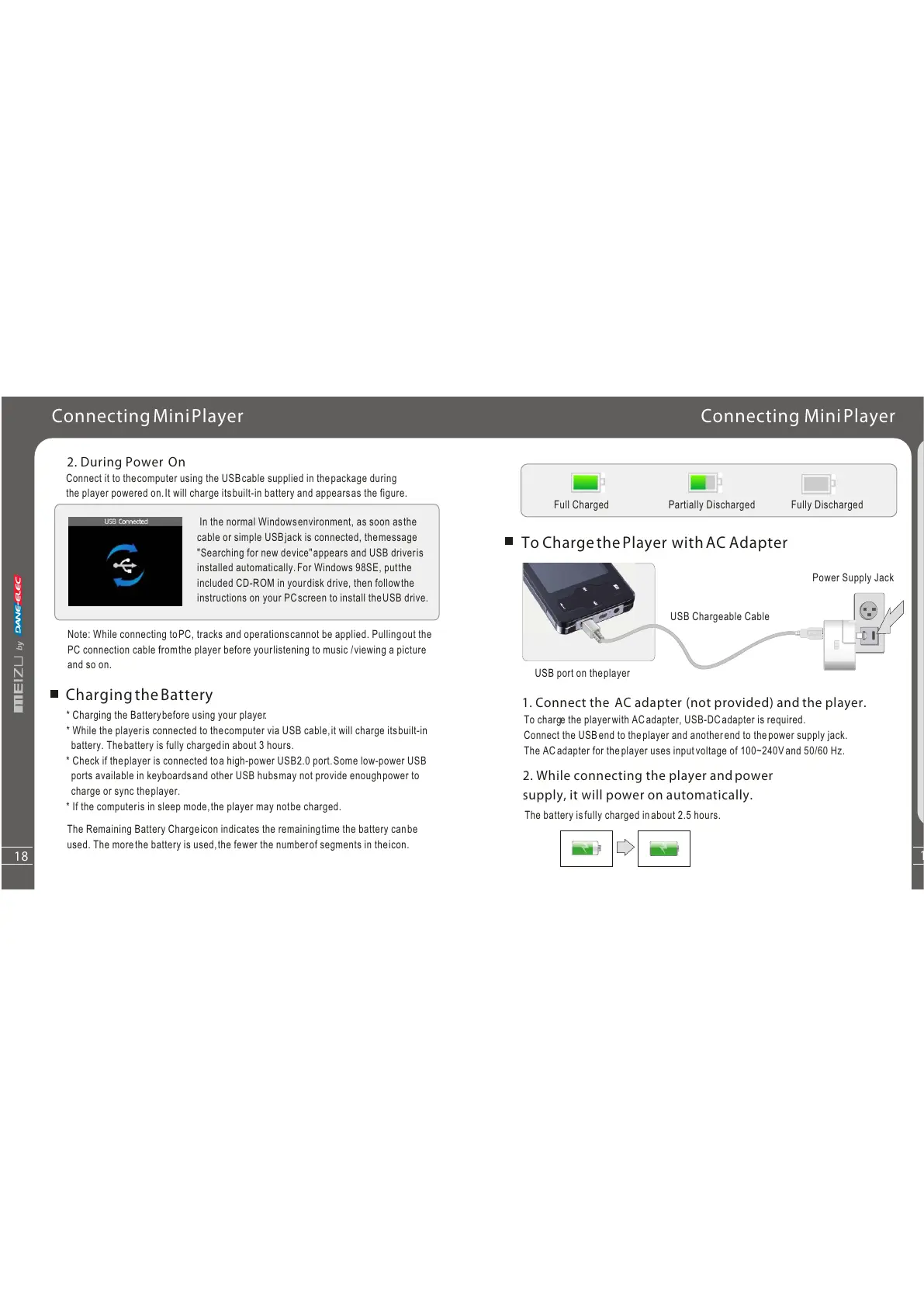 * Charging the Batterybefore using your player.