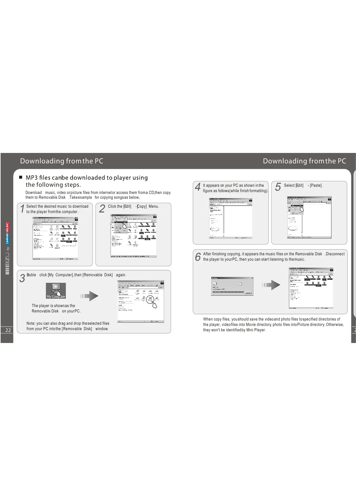 When copy files, youshould save the videoand photo files tospecified directories of