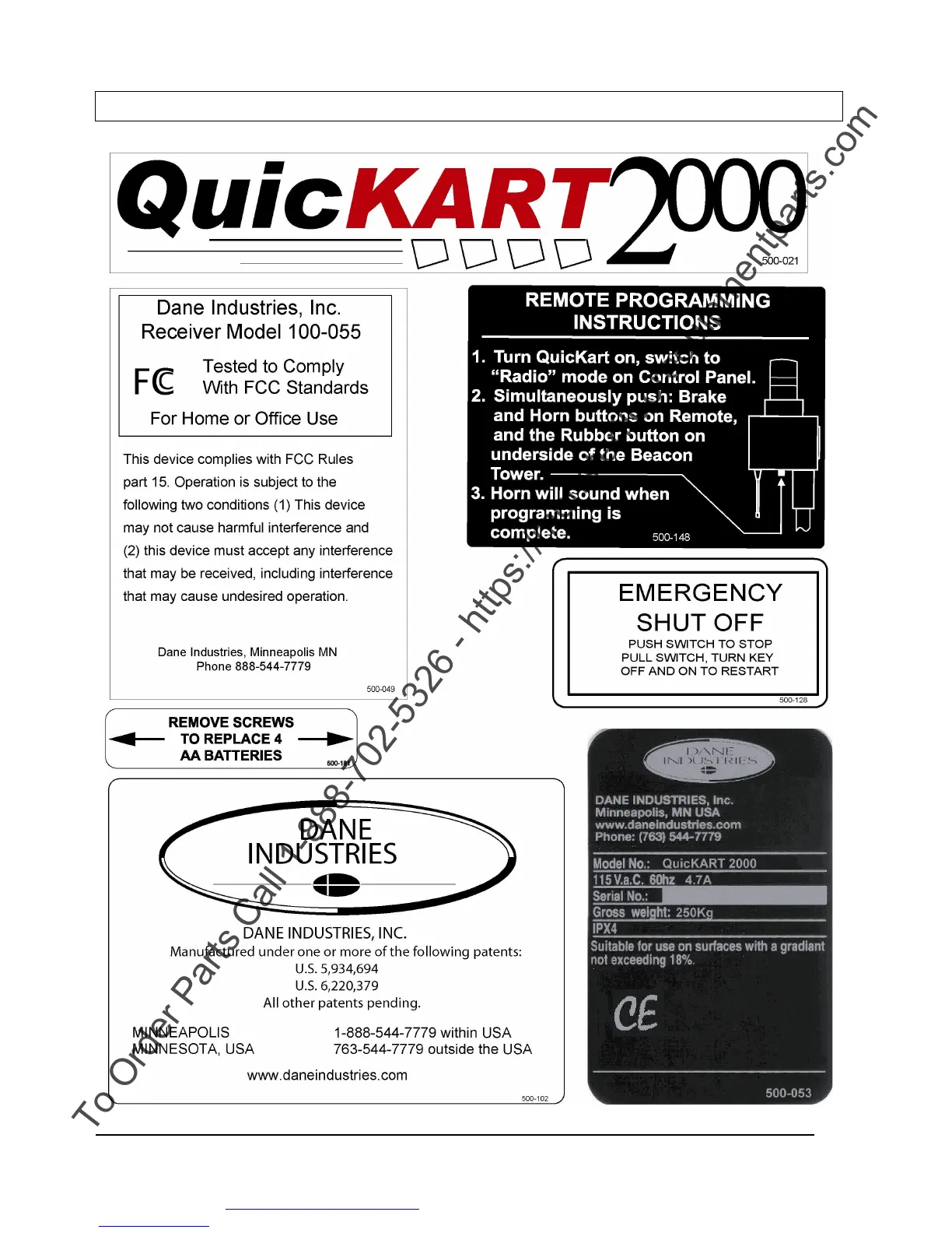 Dane Technologies, Inc. QuicKART 2000 Owner’s Manual
