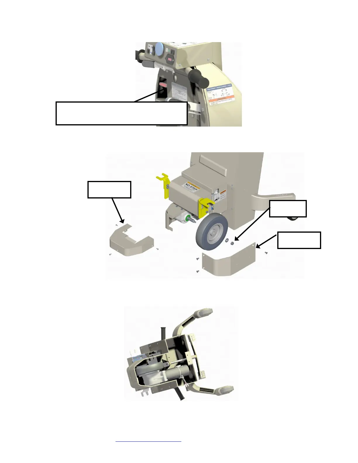 In a clear open area, use the handlebars to pull the machine to its right side and lay