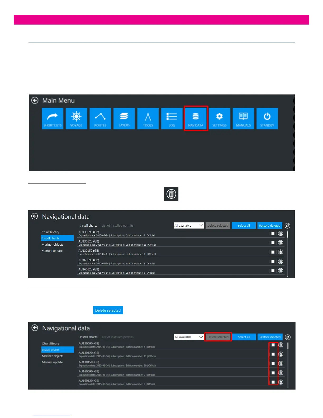 To delete several installed ENC Permits, select the Permits you want to delete by ticking their check boxes
