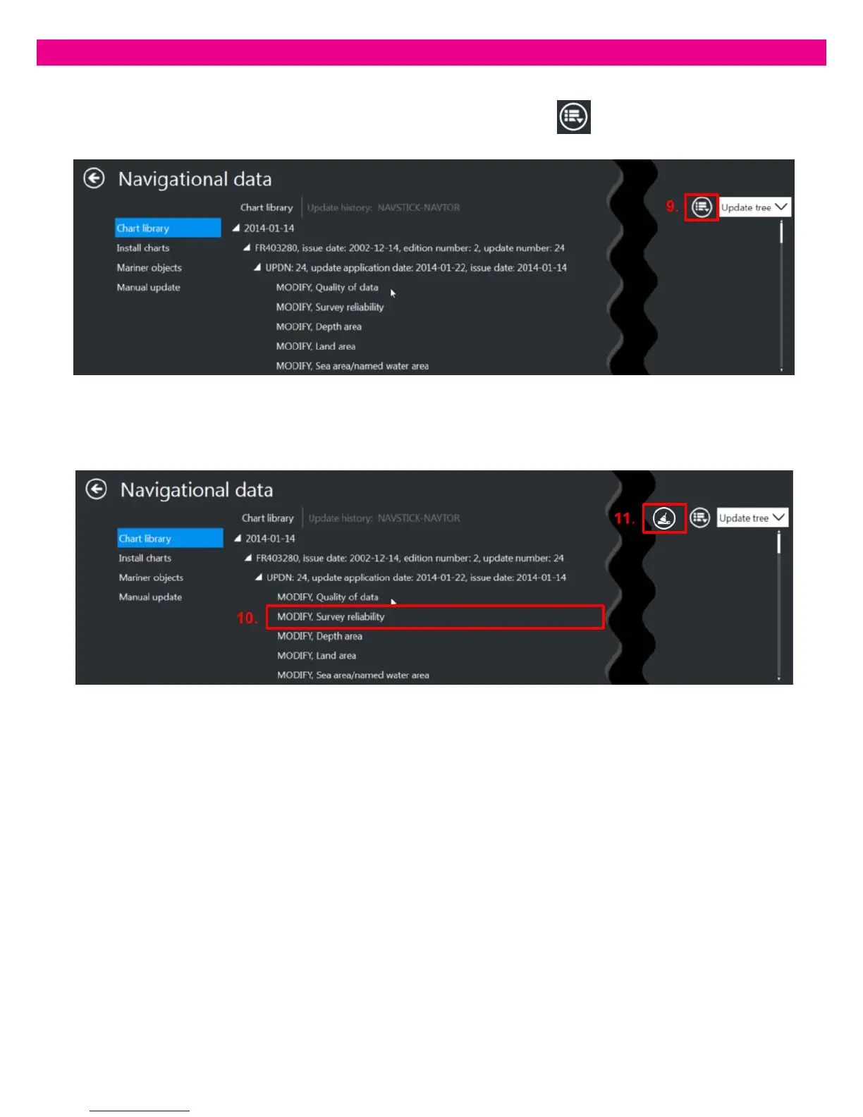 10. To scroll the Chart View to an updated object, select the object in the list: the chart view is scrolled to the object.