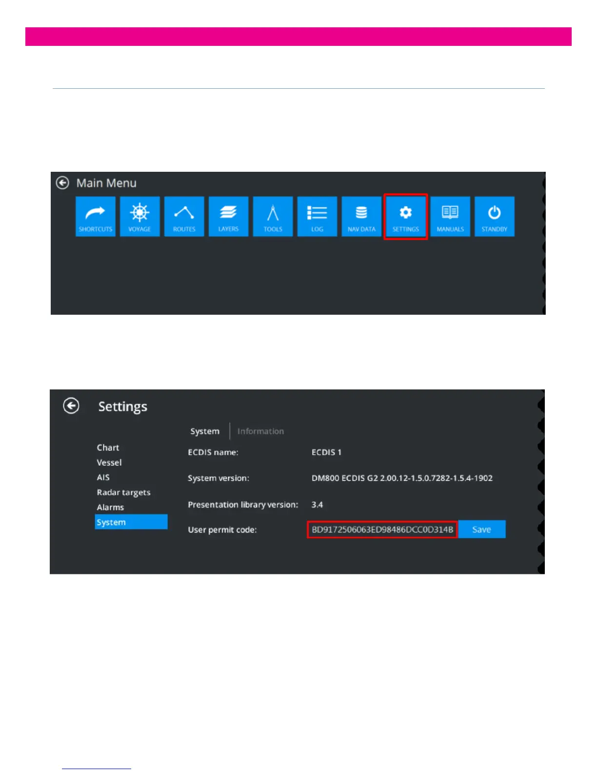 The ‘User ‘Permit Number’ is a 28 character alphanumeric string that is unique to each ECDIS installation or group of
