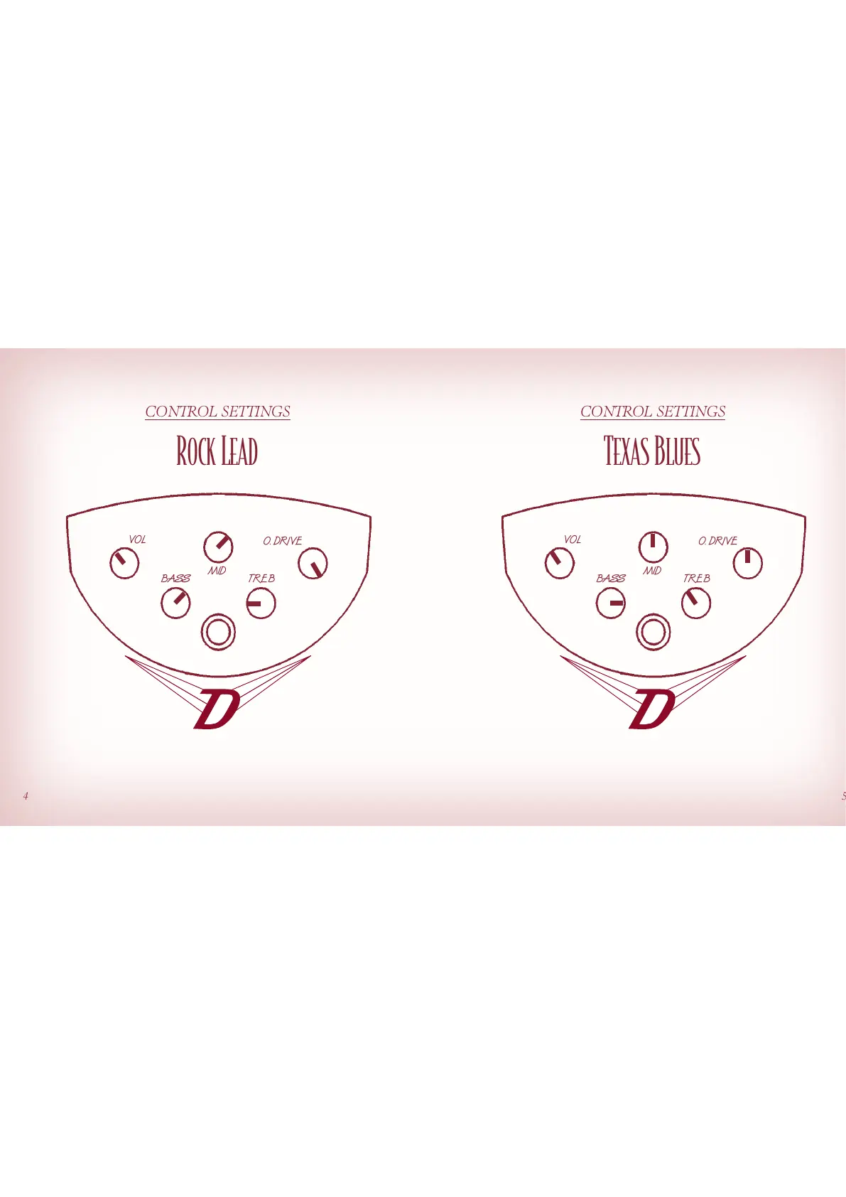 Danelectro DADDY O - Control Setting Recommendations; Rock Lead and Texas Blues Settings