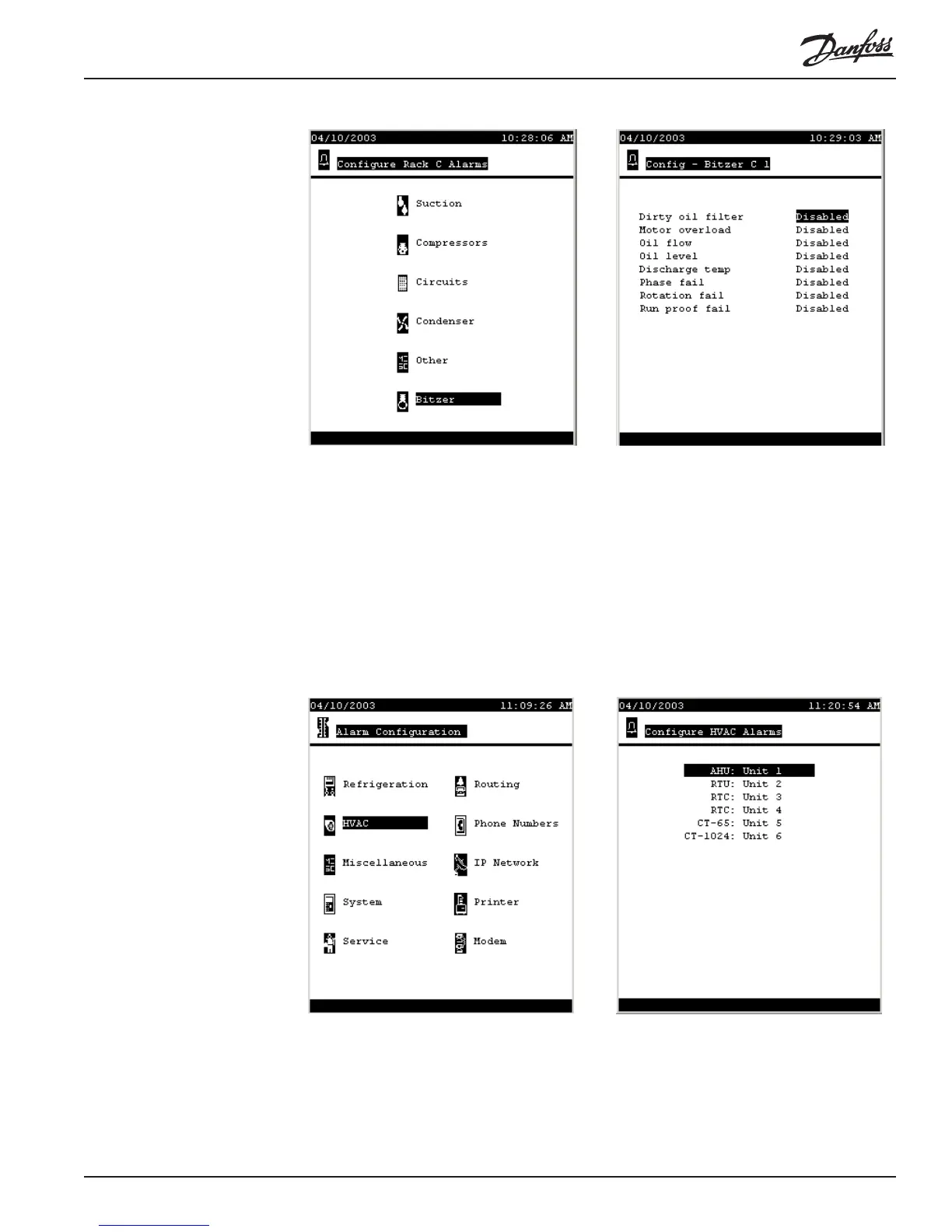 menu is shown at left below. When you select HVAC from the alarm configuration