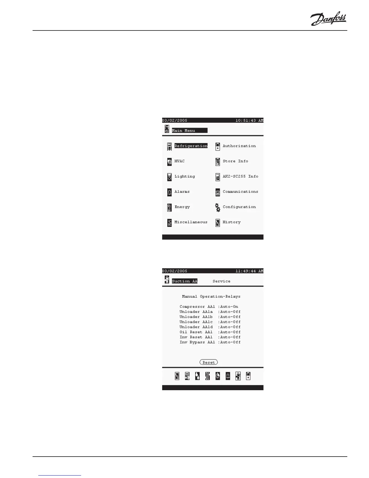 The service screens for refrigeration, HVAC, and lighting have special functions for