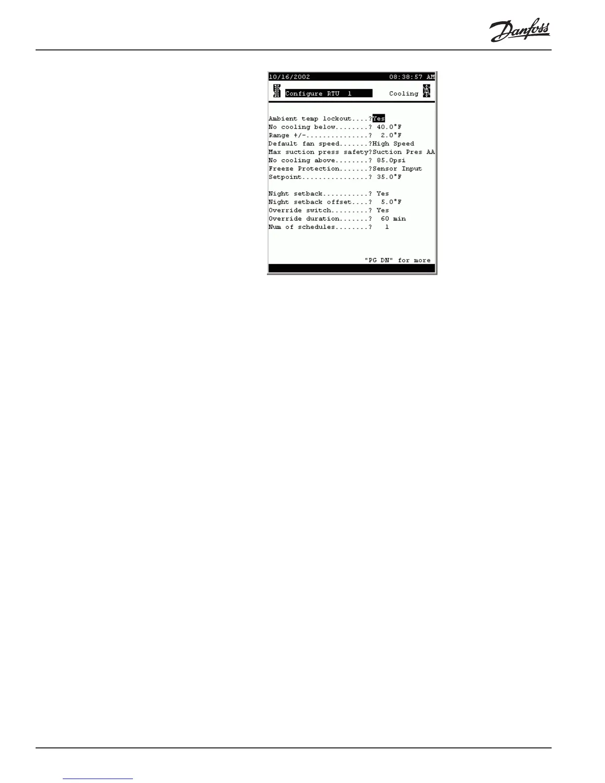 Night setback (List box: Yes, No) Whether or not the cooling