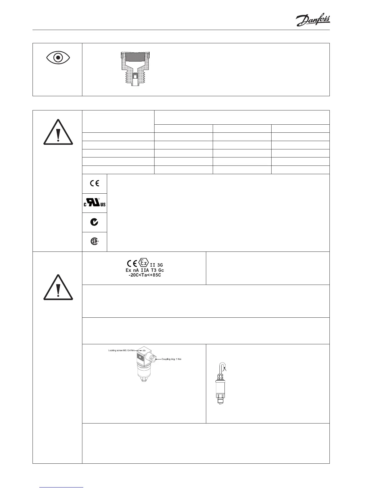 Class I, Div. 2, Group A,B,C and D acc. to ANSI/ISA 12.12.01, le no E227388. MWP 75 bar/1088 bar.