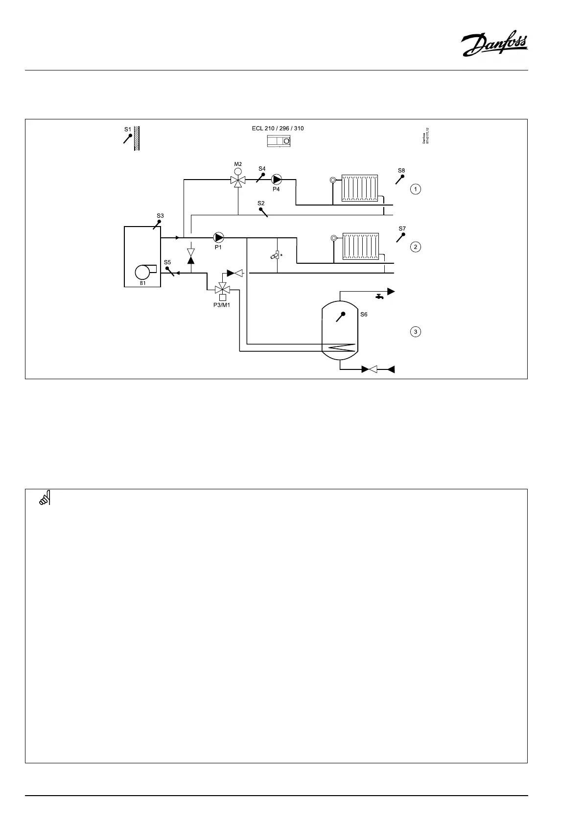 BoilerON/OFFcontrolforadirectheatingcircuit(1),amixingcircuit(2)andaDHWcircuit(3).PartlyDHWpriority.