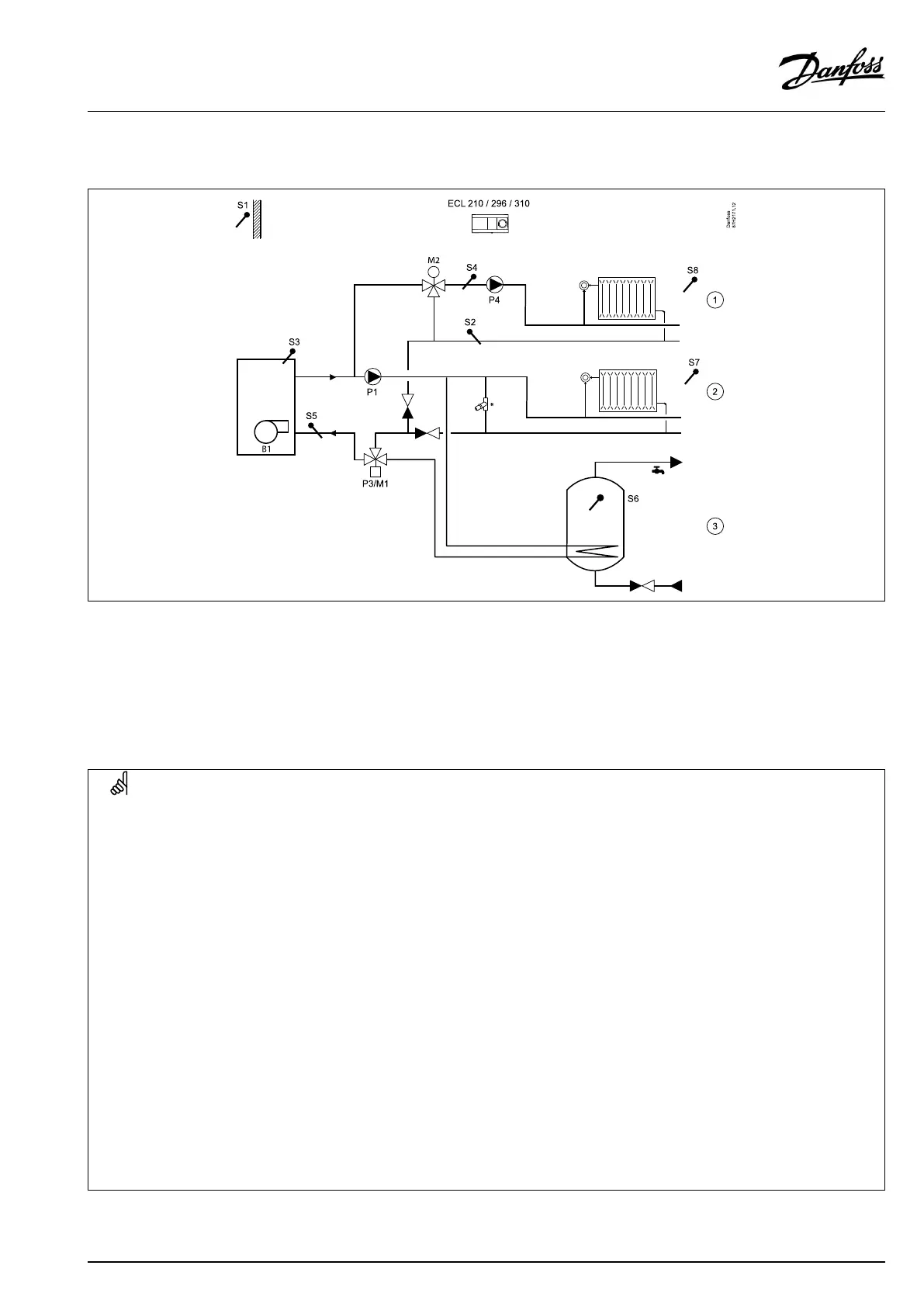 BoilerON/OFFcontrolforadirectheatingcircuit(1),amixingcircuit(2)andaDHWcircuit(3).DHWpriority.