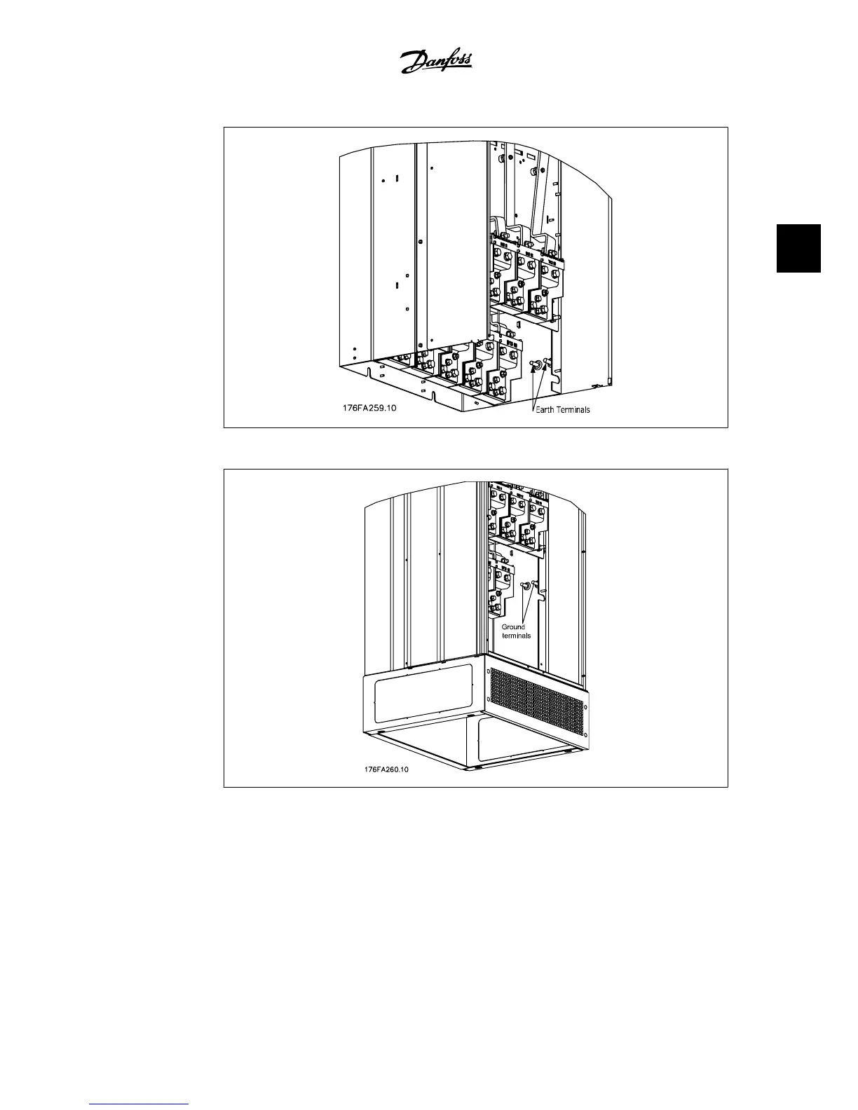 3.18: Position of ground terminals IP 21 (NEMA type 1) and IP 54 (NEMA type 12)