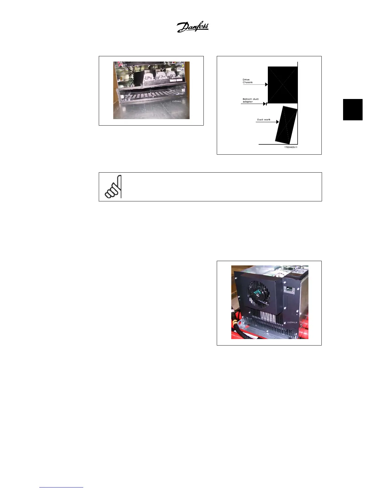 bottom duct adapter on the bottom of the adjustable frequency drive as shown below.