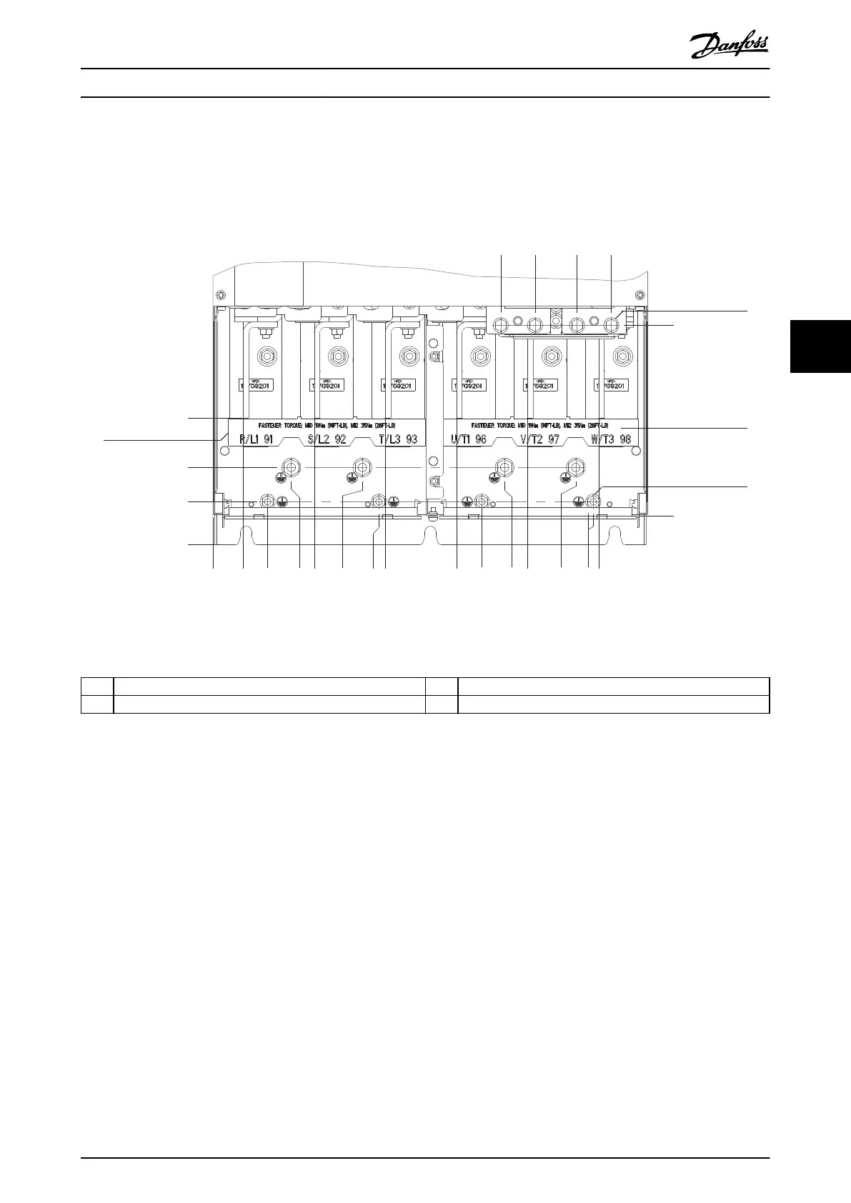 2 Brake or regeneration terminals 4 Ground terminals, M8 and M10 nuts