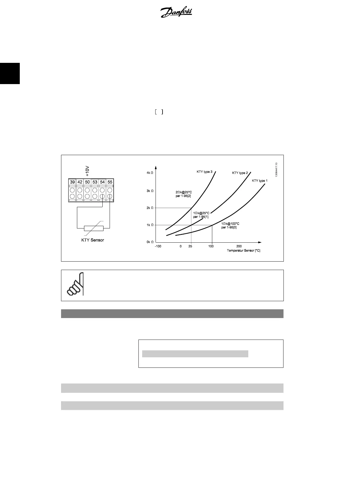 FC 302 can handle three types of KTY sensors, defined in par 1-95. The actual sensor temperature