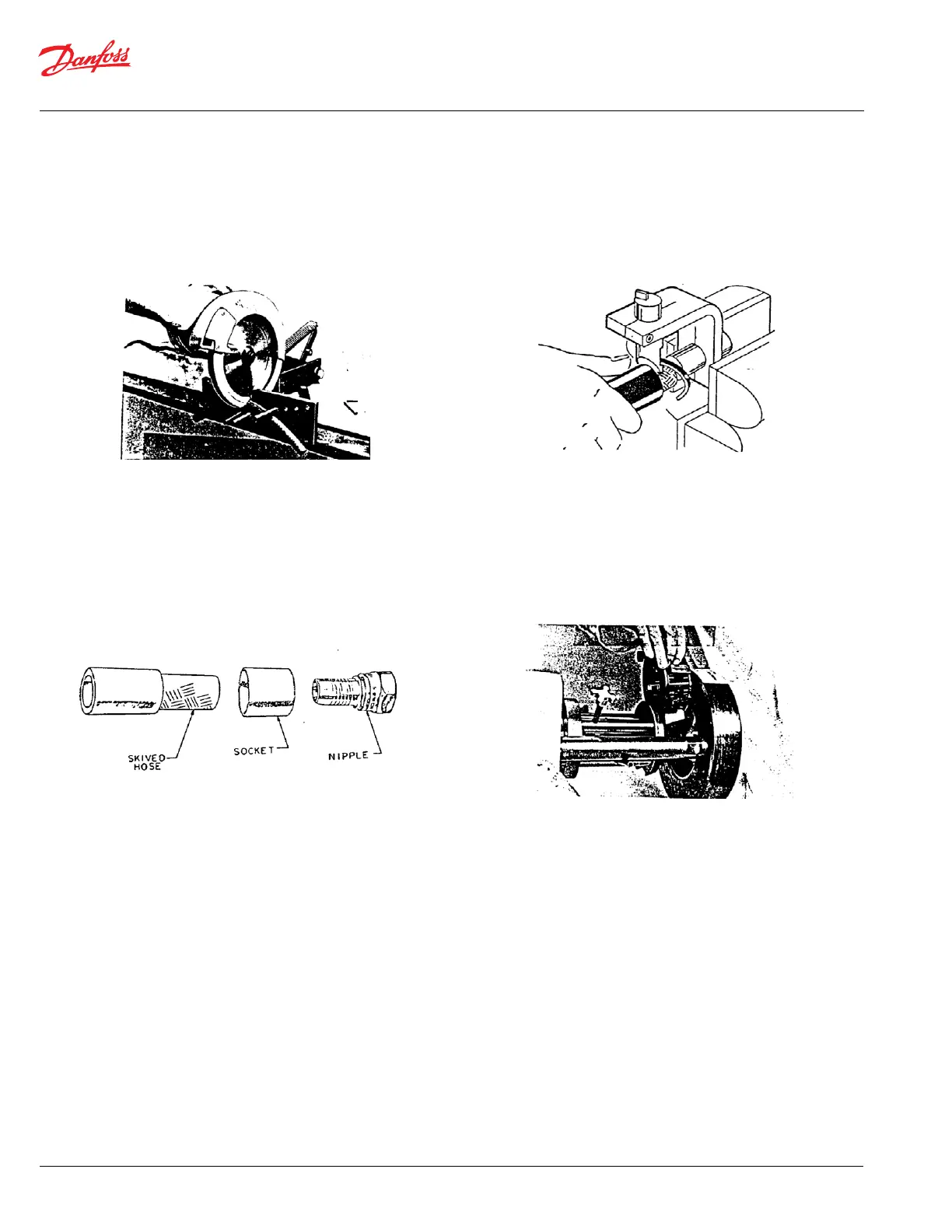 USE THE CORRECT SIZE DANFOSS FT1230 HOSE COVER SKIVING TOOL.