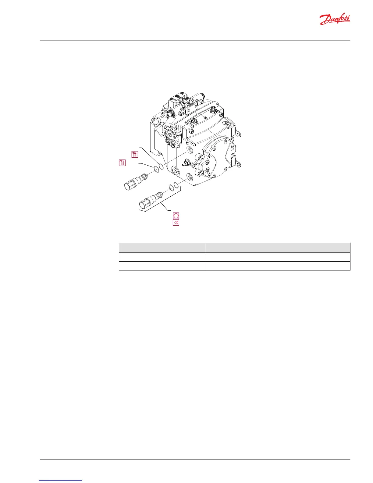2. Install the charge pressure relief valve. Torque to 52 N•m [38 lbf•ft].