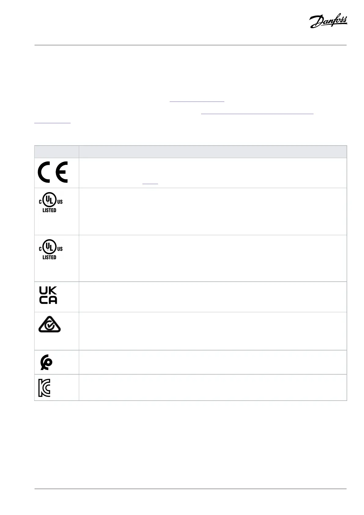 Certificates and Declarations of Conformity are available on request or at https://www.danfoss.com/en/service-and-support/