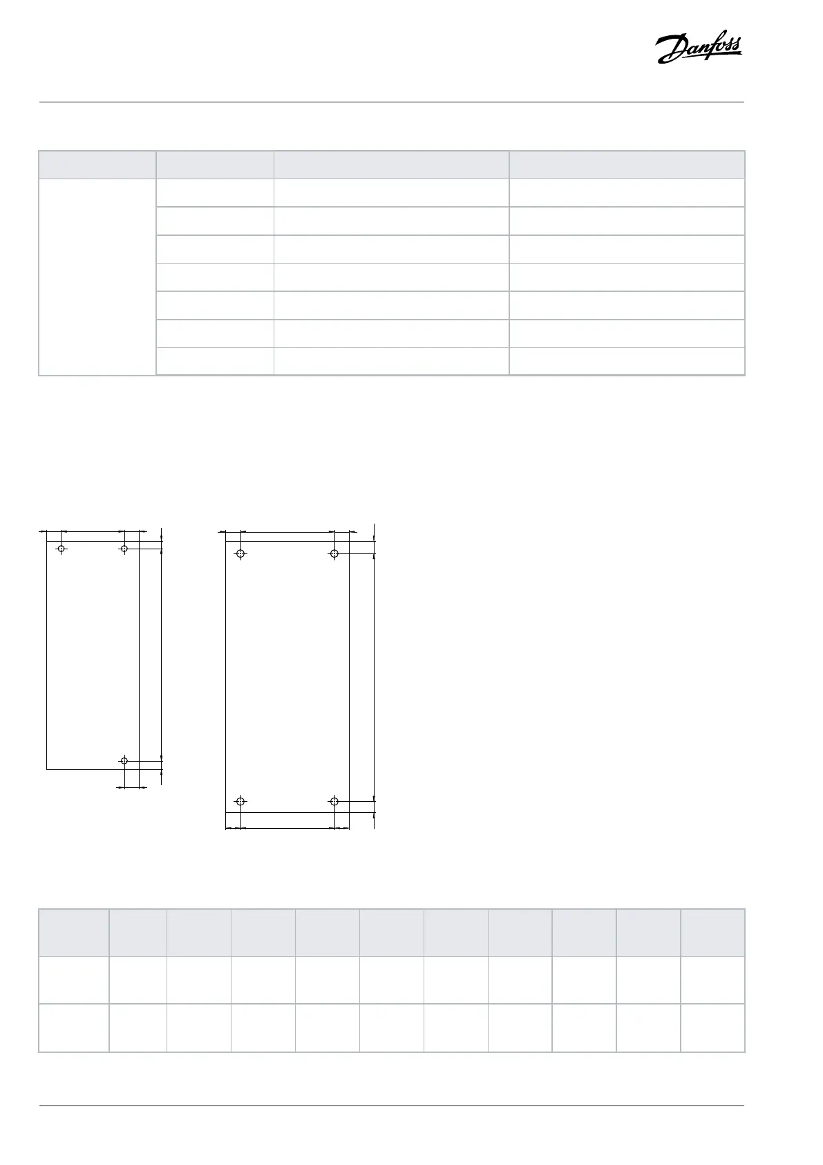 Table 50: Drilling Pattern Dimensions for Wall-mounted Drives