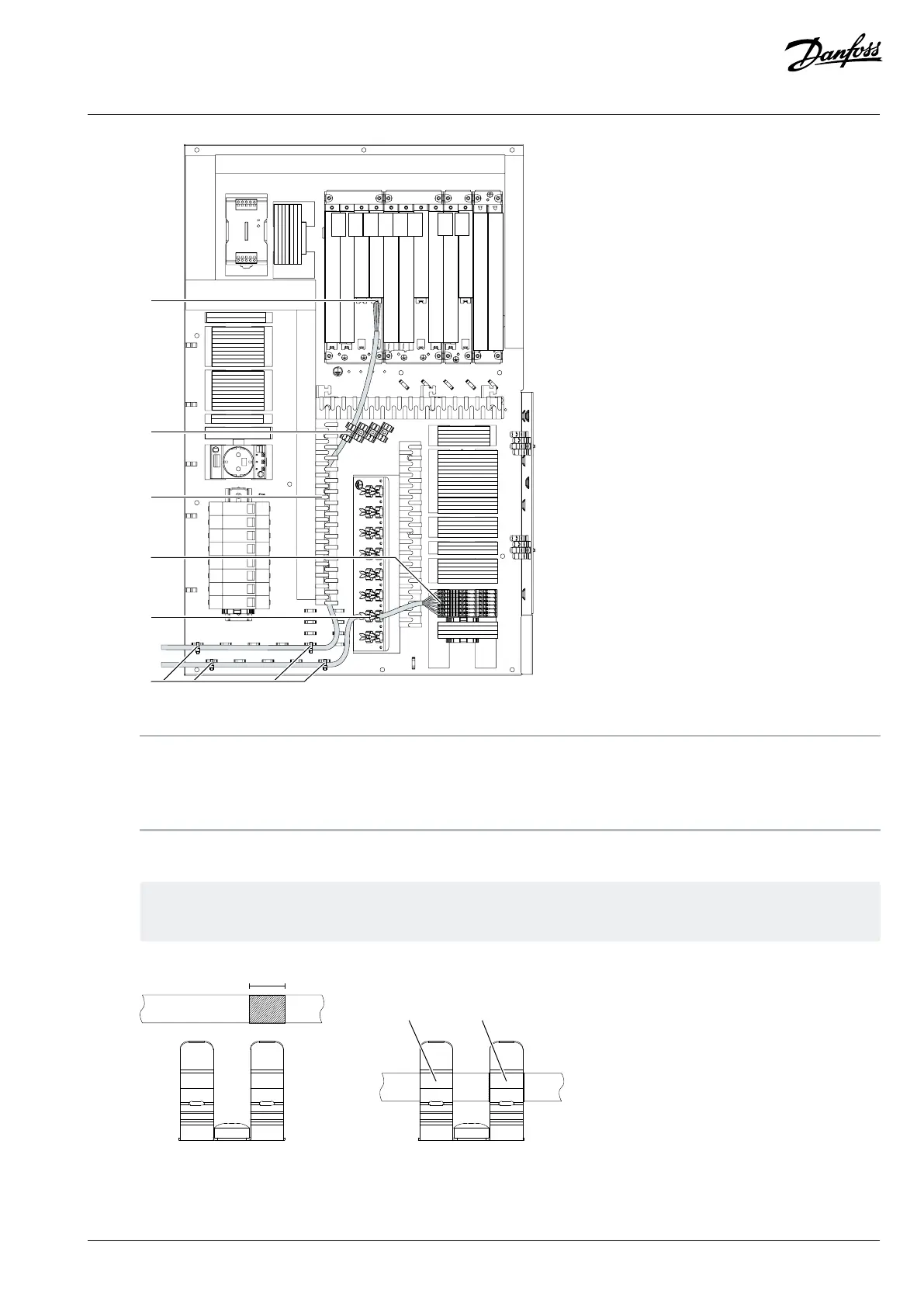 2. Strip the control cables. Attach the control cables to the cable clamps on the control compartment.