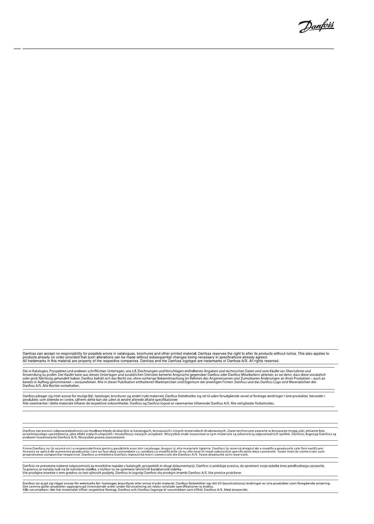 A Danfoss nem vállal felelősséget a katalógusokban és más nyomtatott anyagban lévő esetleges tévedésért, hibáért. Danfoss fenntartja magának a jogot, hogy termékeit értesítés nélkül