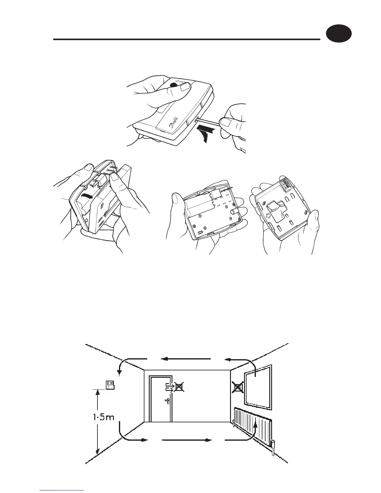 Iš pradžių nuimkite sienos plokštelę nuo prietaiso galo.
