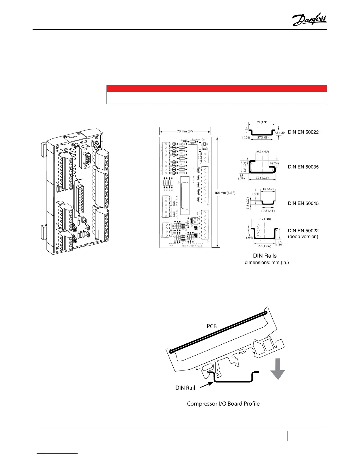 enclosure equipped with DIN EN 50022, 50035, or 50045 mounting rails. The board should